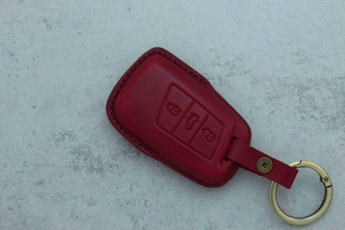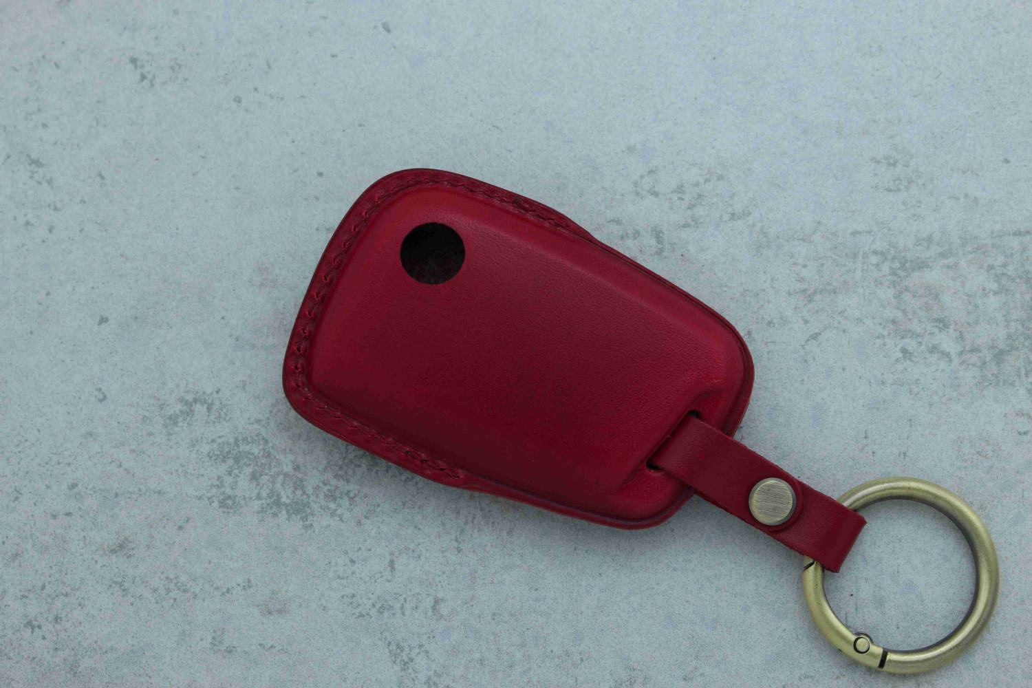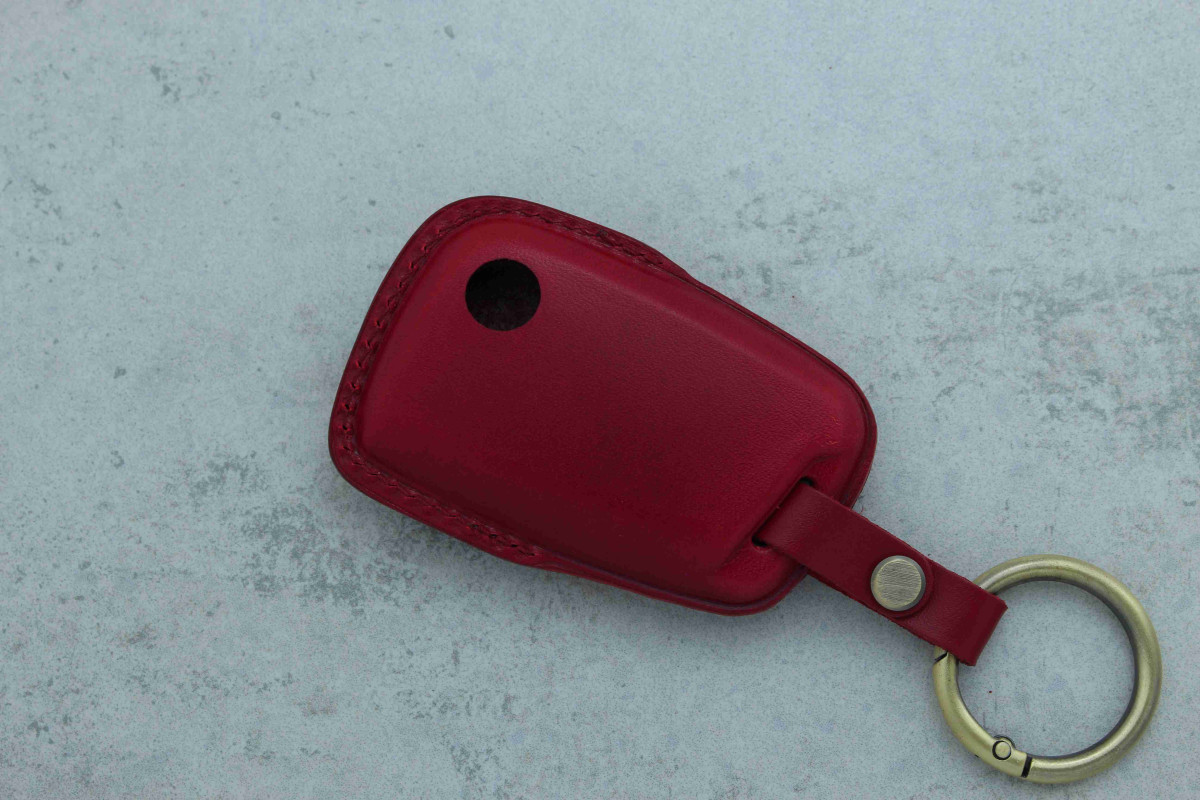 Чохол для автоключа VW Passat B8 — 3 кнопки, червона шкіра — стильний і надійний аксесуар, який захищає ключ від подряпин, потертостей та щоденних ушкоджень. М’яка натуральна шкіра щільно облягає корпус ключа, забезпечуючи комфортне користування та яскравий естетичний вигляд.