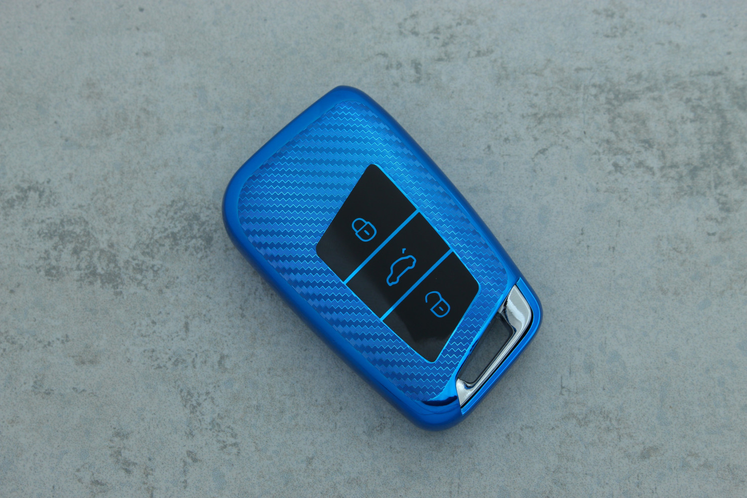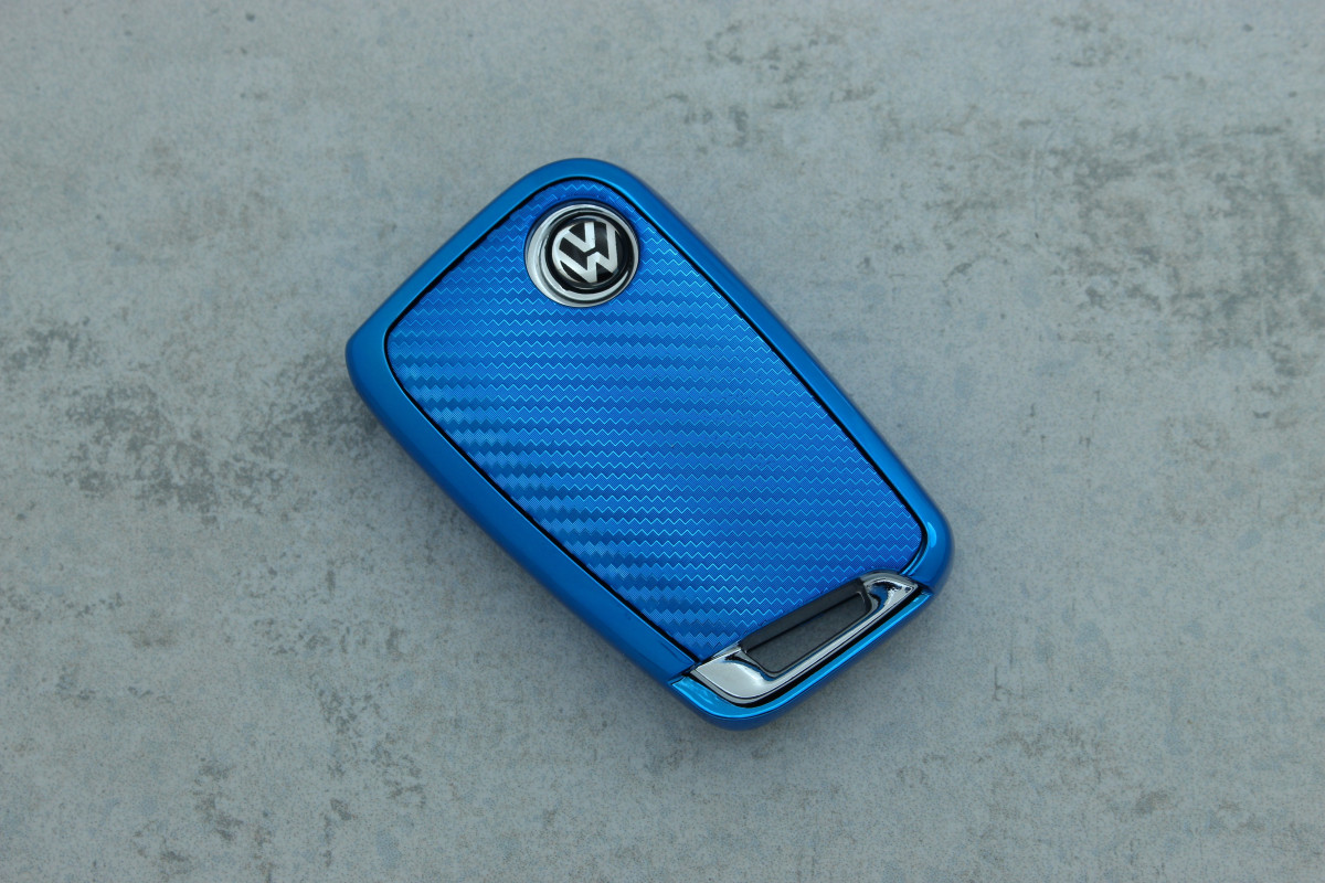 Чохол для автоключа Volkswagen 3 кнопки Smart синій поліуретановий карбон — стильний та практичний аксесуар, що забезпечує надійний захист ключа від подряпин, ударів та щоденного зношування.