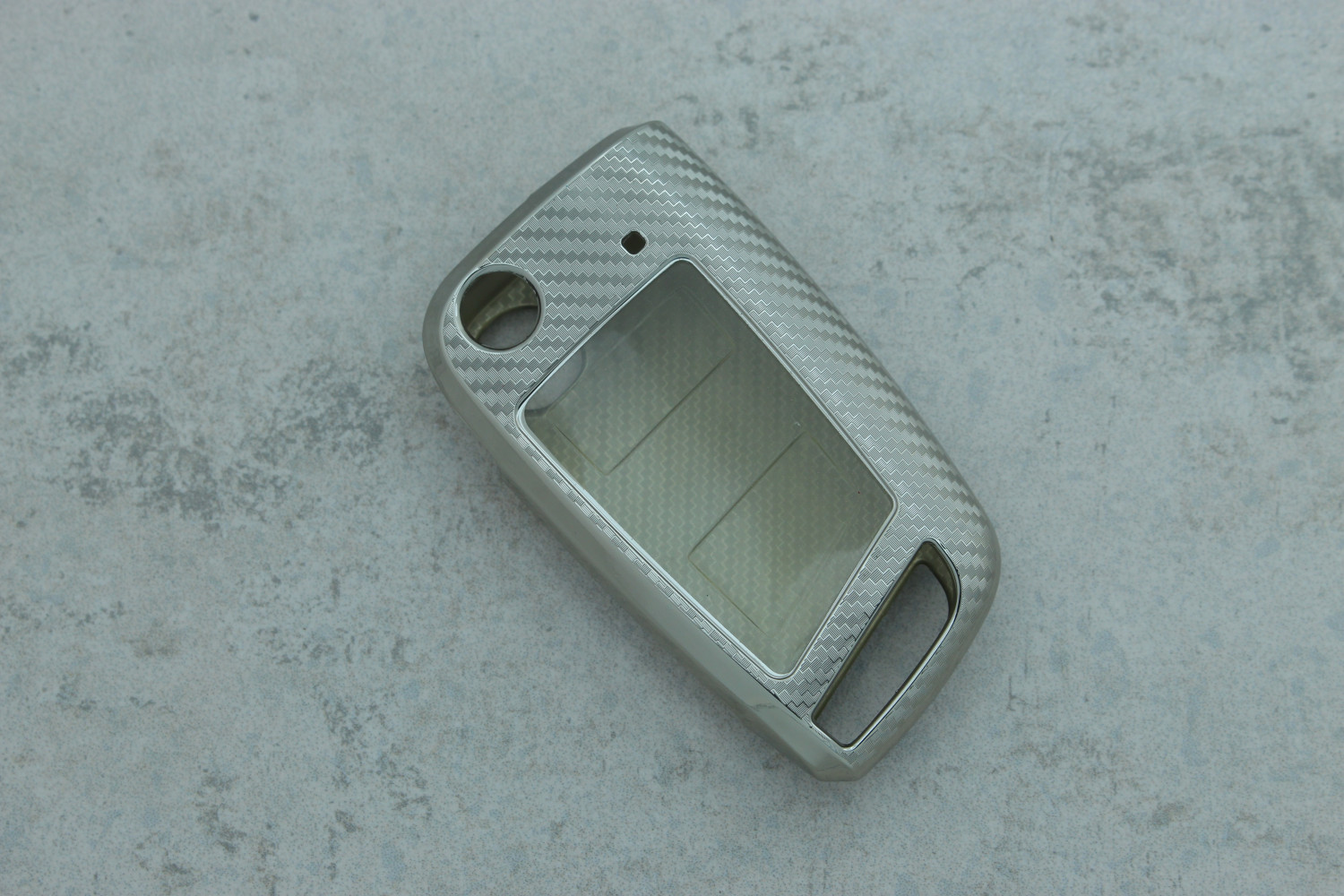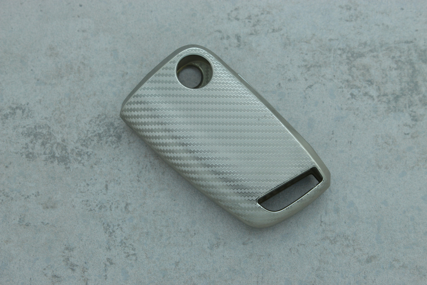 Чохол для автоключа Volkswagen 3 кнопки Passat срібний карбон поліуретановий — сучасний і практичний аксесуар, що захищає ключ від подряпин, ударів і щоденного зносу.