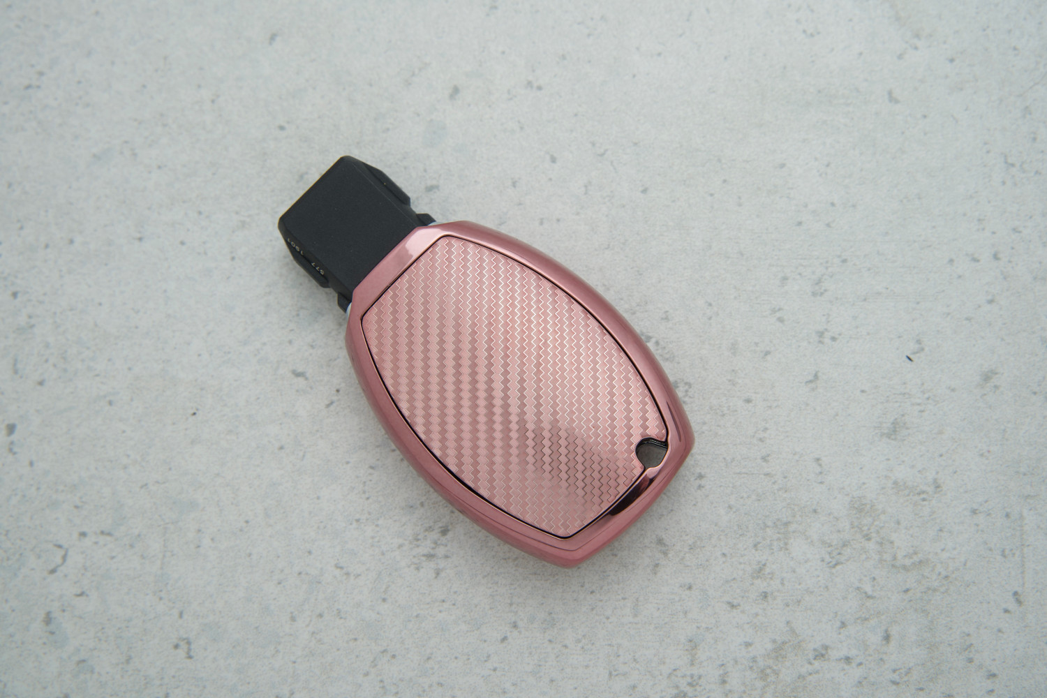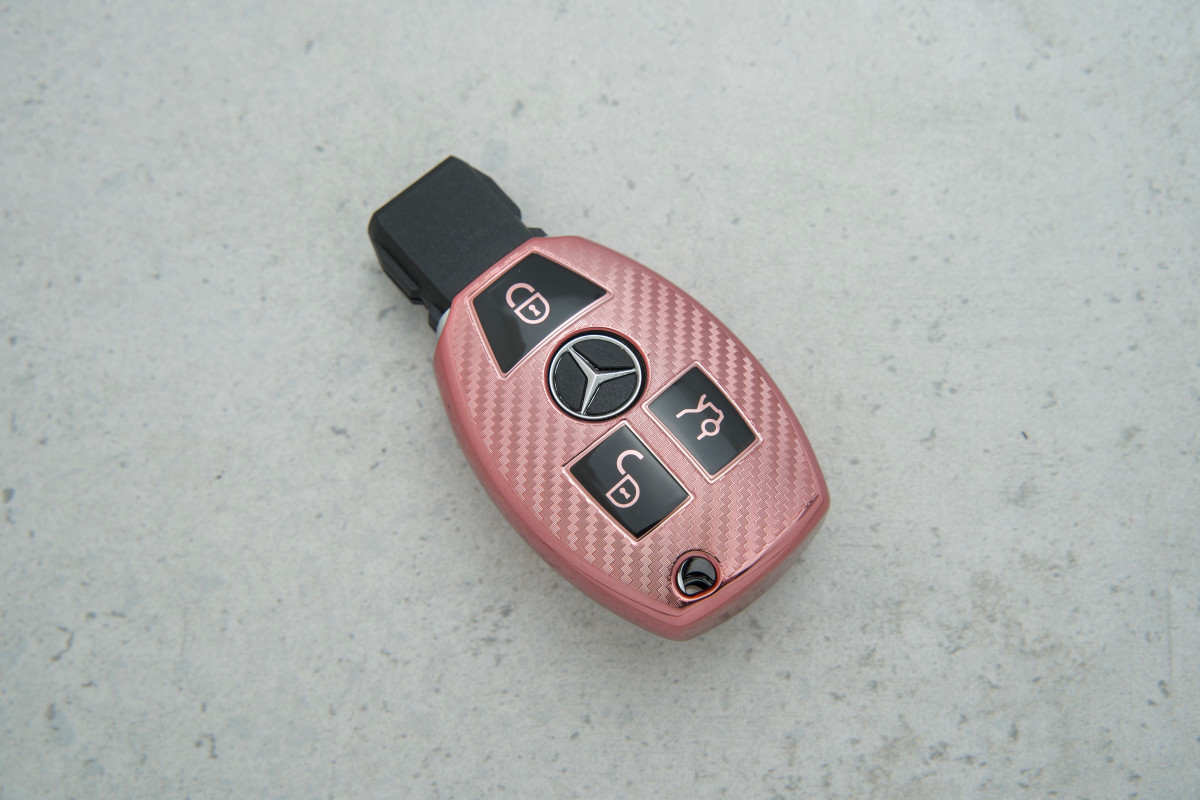 Чохол для ключа Mercedes на 3 кнопки в рожевому карбоновому виконанні — це не лише захист, а й елемент стилю, що підкреслює вишуканий смак власниці автомобіля.