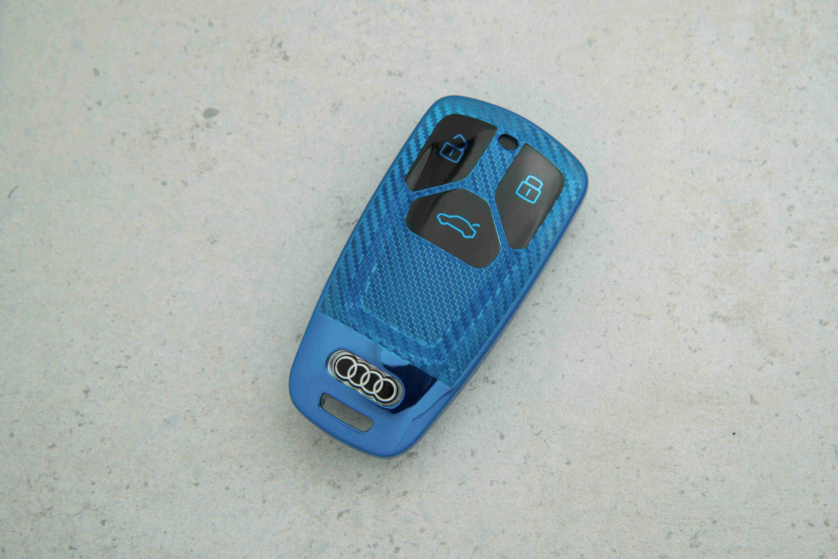 Чохол для автоключа Audi Q7 (3 кнопки) — синій карбон, ТПУ — сучасний і надійний аксесуар, який забезпечує повний захист ключа від подряпин, потертостей та щоденних ушкоджень. М’який і міцний термопластичний поліуретан щільно прилягає до корпусу, зберігаючи зручність користування та привабливий вигляд.