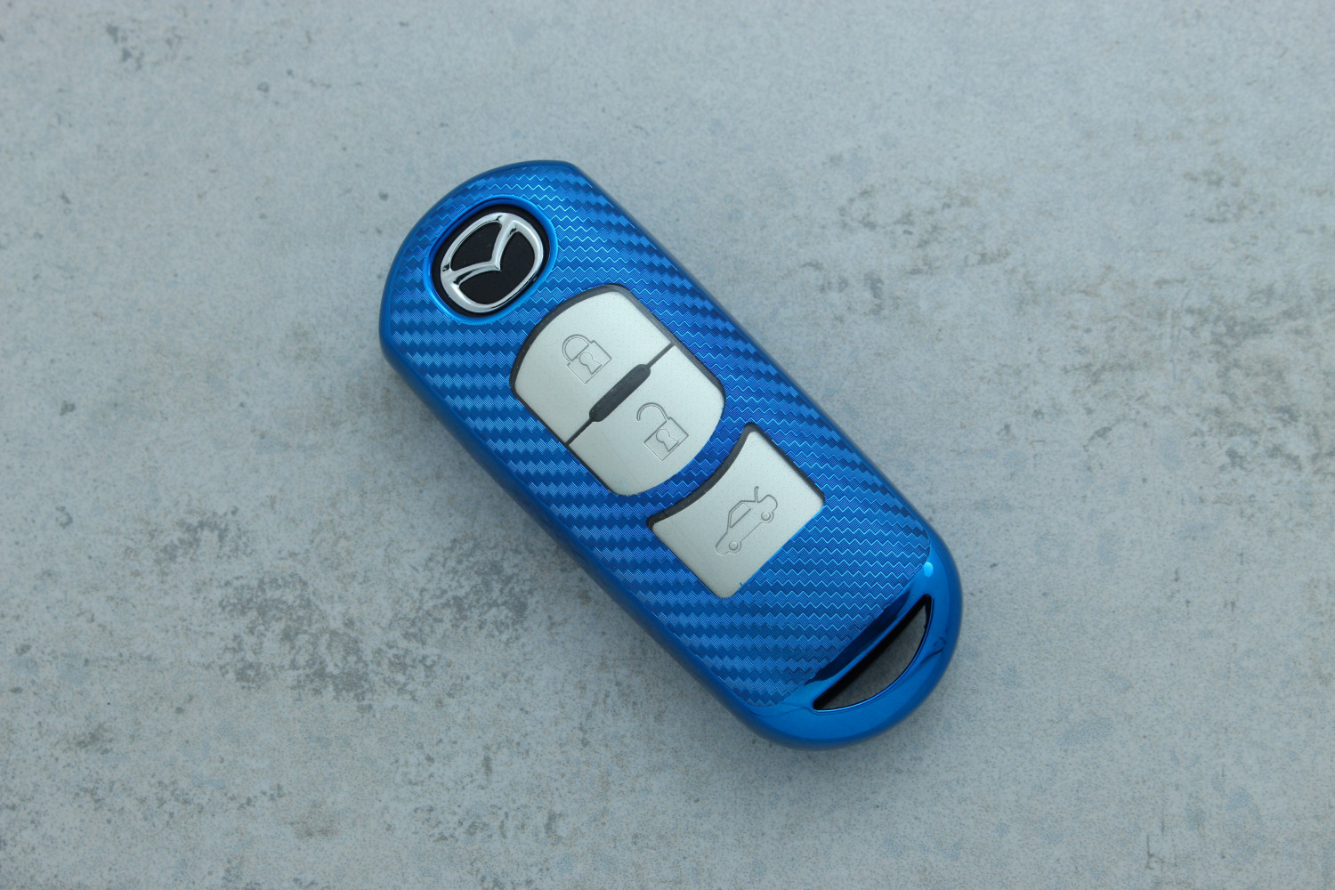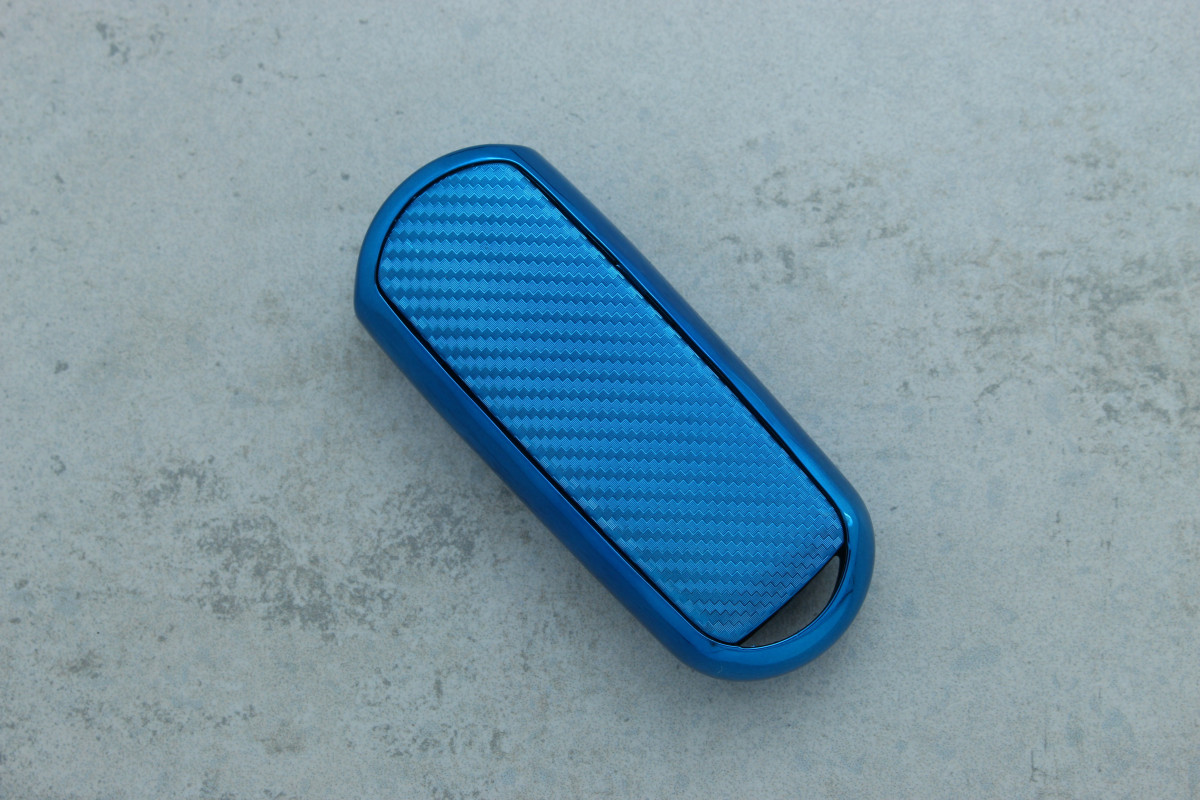 Чохол для автоключа Mazda 3 кнопки Smart CX-4/CX-5 карбон синій поліуретановий — яскравий і надійний аксесуар, що захищає ключ від подряпин, ударів та щоденного зносу, додаючи сучасного стилю.