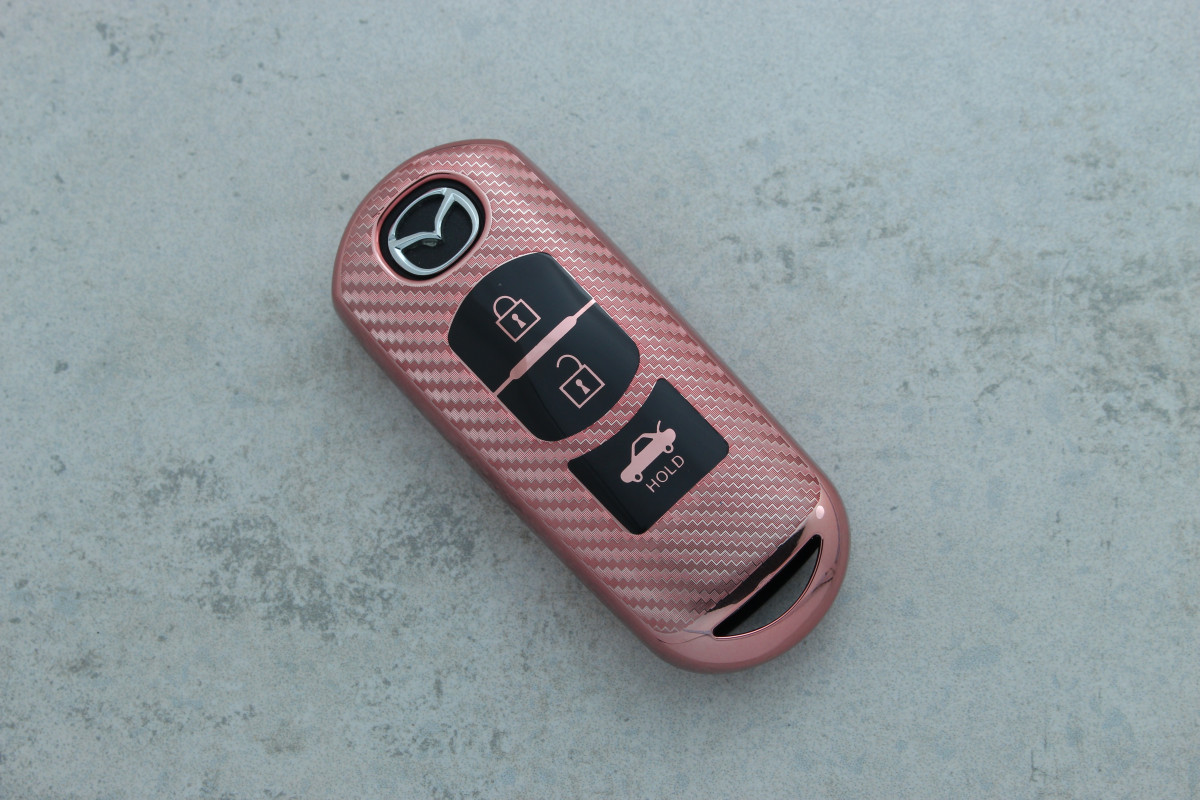 Чохол для автоключа Mazda 3 кнопки TPU Smart CX-4/CX-5 карбон рожевий поліуретановий — стильний і надійний аксесуар, що оберігає ключ від подряпин, ударів та щоденного зносу.
