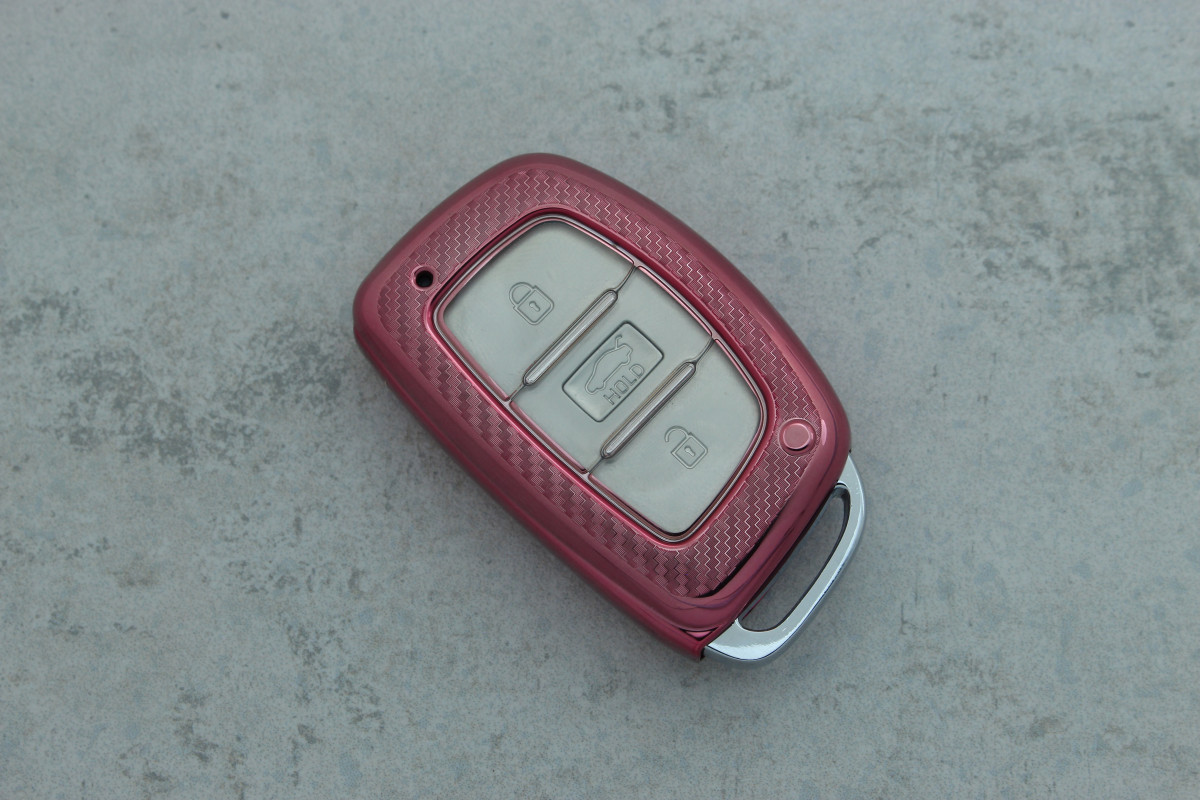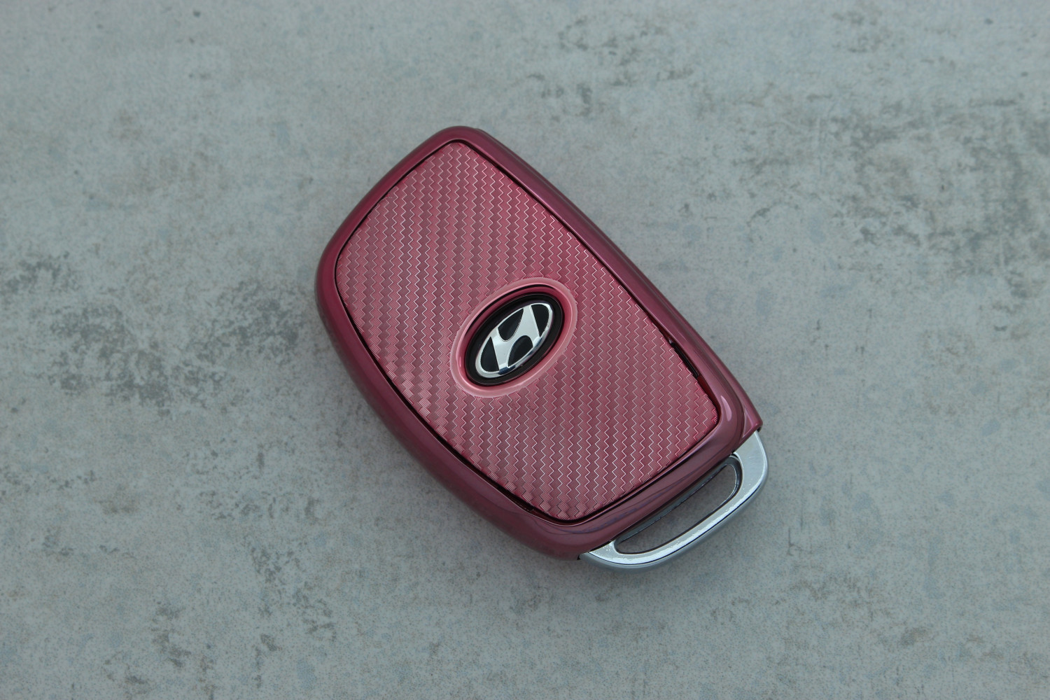 Чохол для автоключа Hyundai А06Н3А ix25/i35 3 кнопки рожевий карбоновий ТПУ — яскравий та практичний аксесуар, що надійно захищає ключ від подряпин, ударів і щоденного зносу.