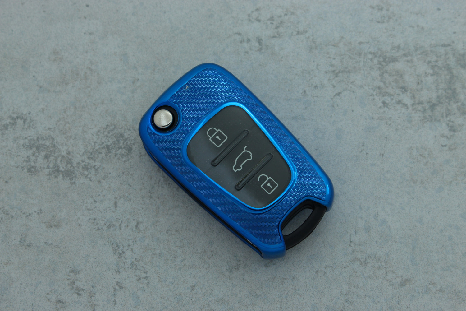 Чохол для автоключа Hyundai Sportage 3 кнопки синій карбоновий ТПУ — стильний і надійний аксесуар, що захищає ключ від подряпин, зносу та щоденних пошкоджень.