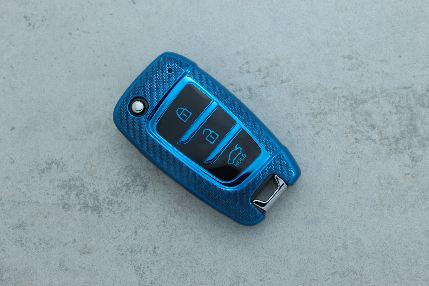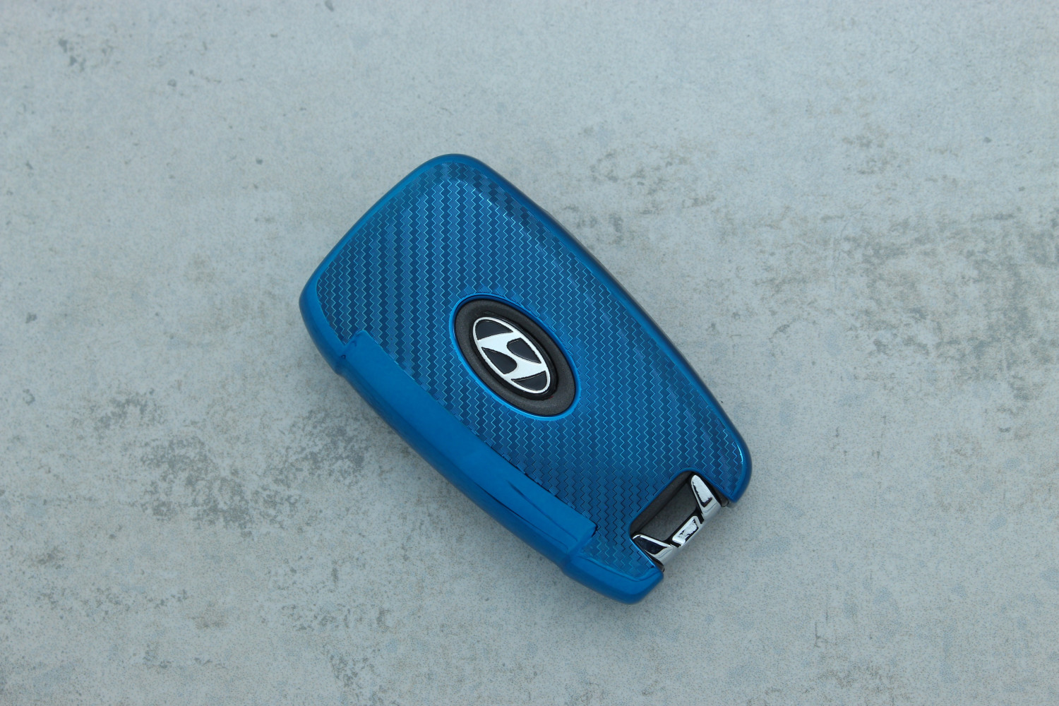 Чохол для автоключа Hyundai Sonata 3 кнопки синій карбоновий поліуретановий — практичний і стильний аксесуар, який ефективно захищає ключ від подряпин, ударів і щоденного зношування.