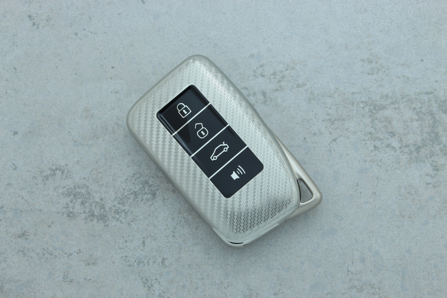 Чохол для автоключа Lexus Smart NX 4 кнопки сріблястий карбоновий поліуретановий (ТПУ) — стильний і функціональний аксесуар, який надійно оберігає ключ від подряпин, ударів і щоденного зносу, зберігаючи його бездоганний вигляд.