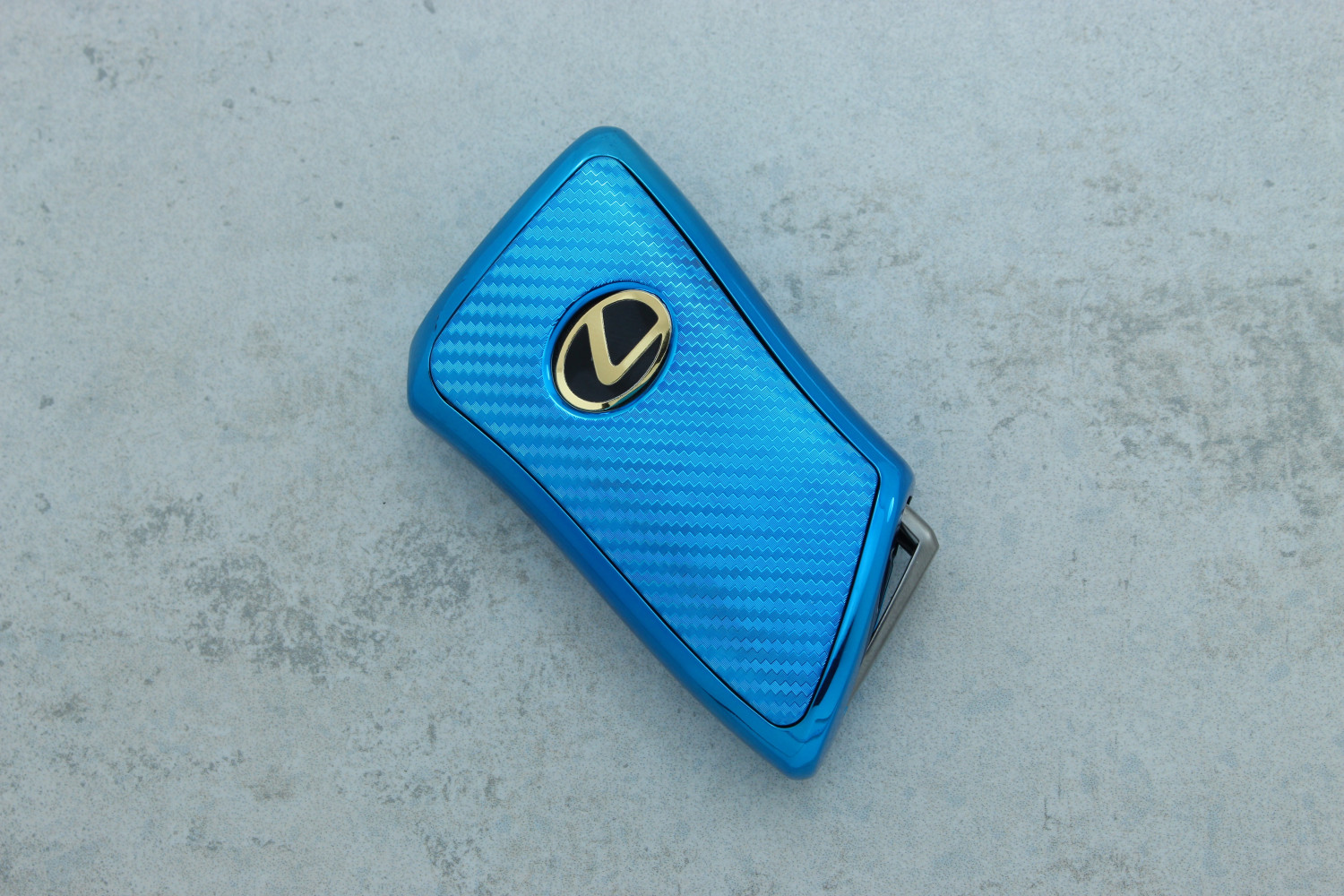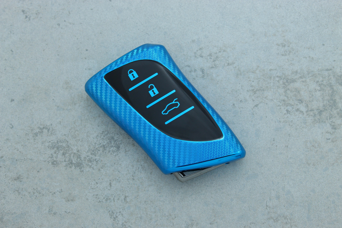 Чохол для автоключа Lexus Smart NX/RX/LX/LC 3 кнопки синій карбоновий поліуретановий — сучасний і надійний аксесуар, який ефективно захищає ключ від подряпин, потертостей та випадкових ударів, зберігаючи його бездоганний вигляд.