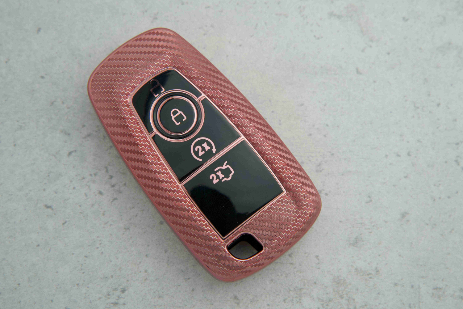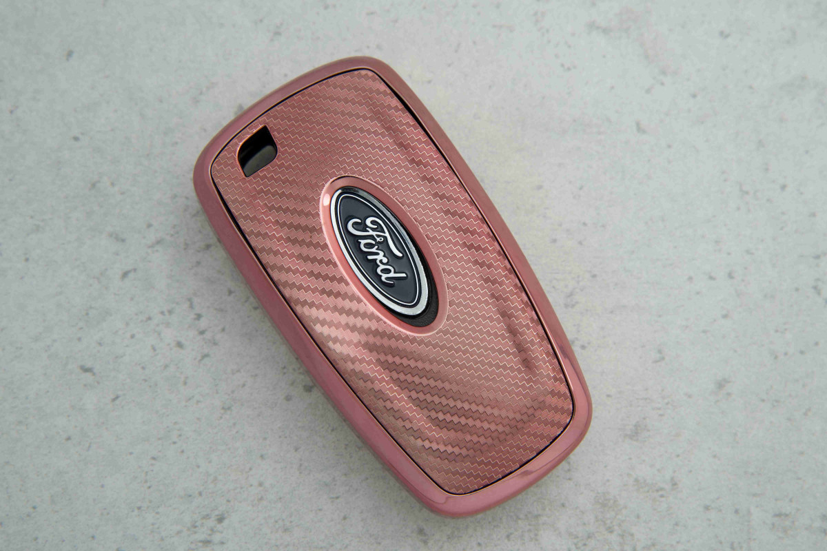 Чохол для автоключа Ford (Fusion/Explorer/Edge/Ranger) рожевий карбон поліуретан, 4 кнопки — стильний і практичний аксесуар, що надійно захищає ключ від подряпин, потертостей та щоденного зносу, зберігаючи його привабливий вигляд.