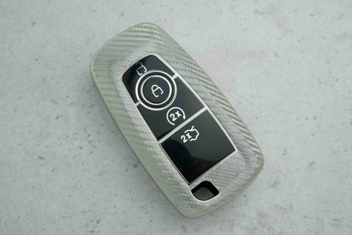З цим срібним карбоновим чохлом ключ Ford Fusion, Explorer, Edge або Ranger буде надійно захищений і виглядатиме акуратно та стильно.