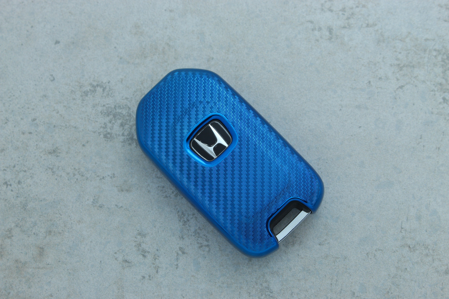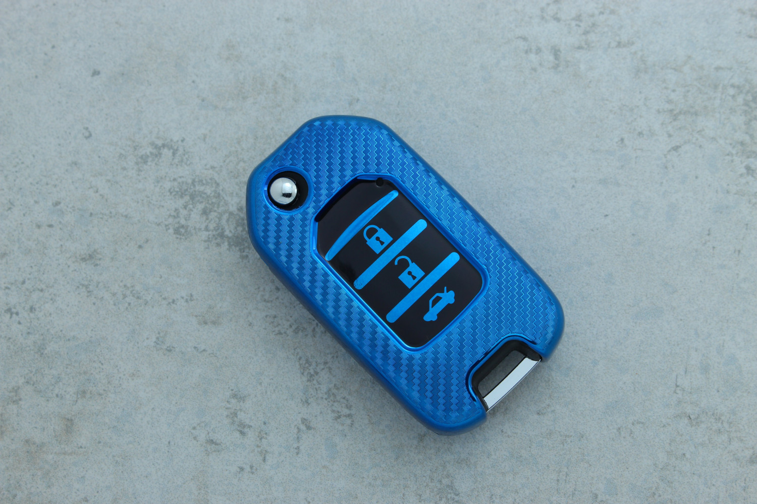 Чохол для автоключа Honda 3 кнопки викидний (тип 37/44) синій карбоновий ТПУ — сучасний і міцний аксесуар, що ефективно захищає ключ від пошкоджень, подряпин та зношування.