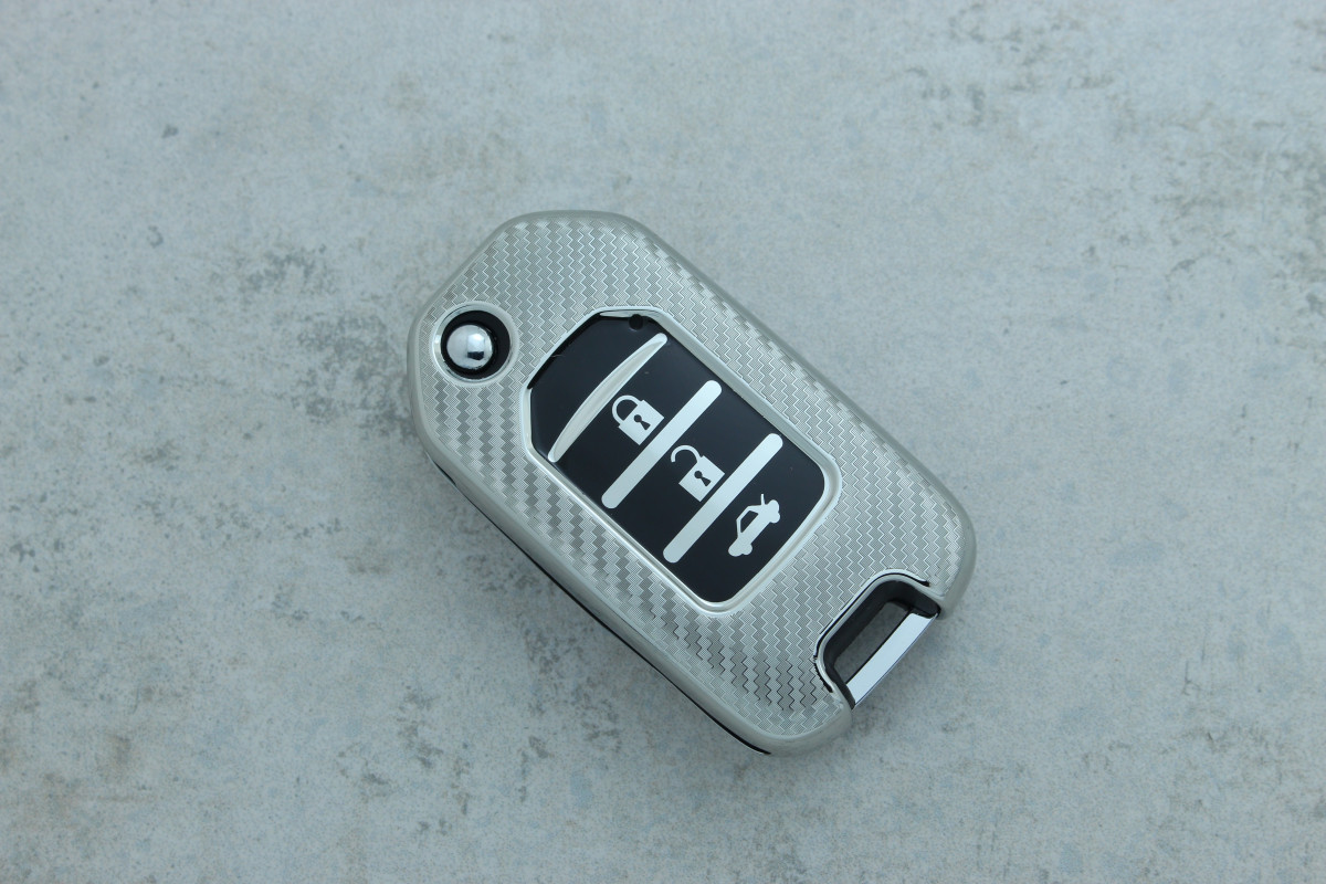 Чохол для автоключа Honda Cover 3 кнопки викидний 37/44 сріблястий карбоновий ТПУ — сучасний і міцний аксесуар, створений для ефективного захисту ключа від подряпин, потертостей та механічних пошкоджень.