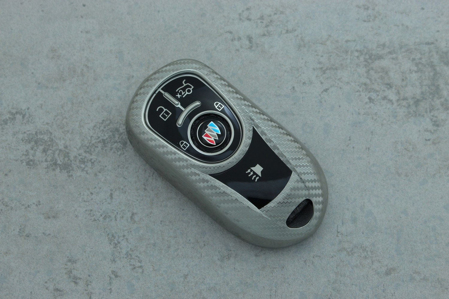 Чохол для автоключа Buick Smart 3+1 кнопок срібний карбон поліуретановий — сучасний та міцний аксесуар, що ефективно оберігає ключ від подряпин, ударів і щоденного зношування.