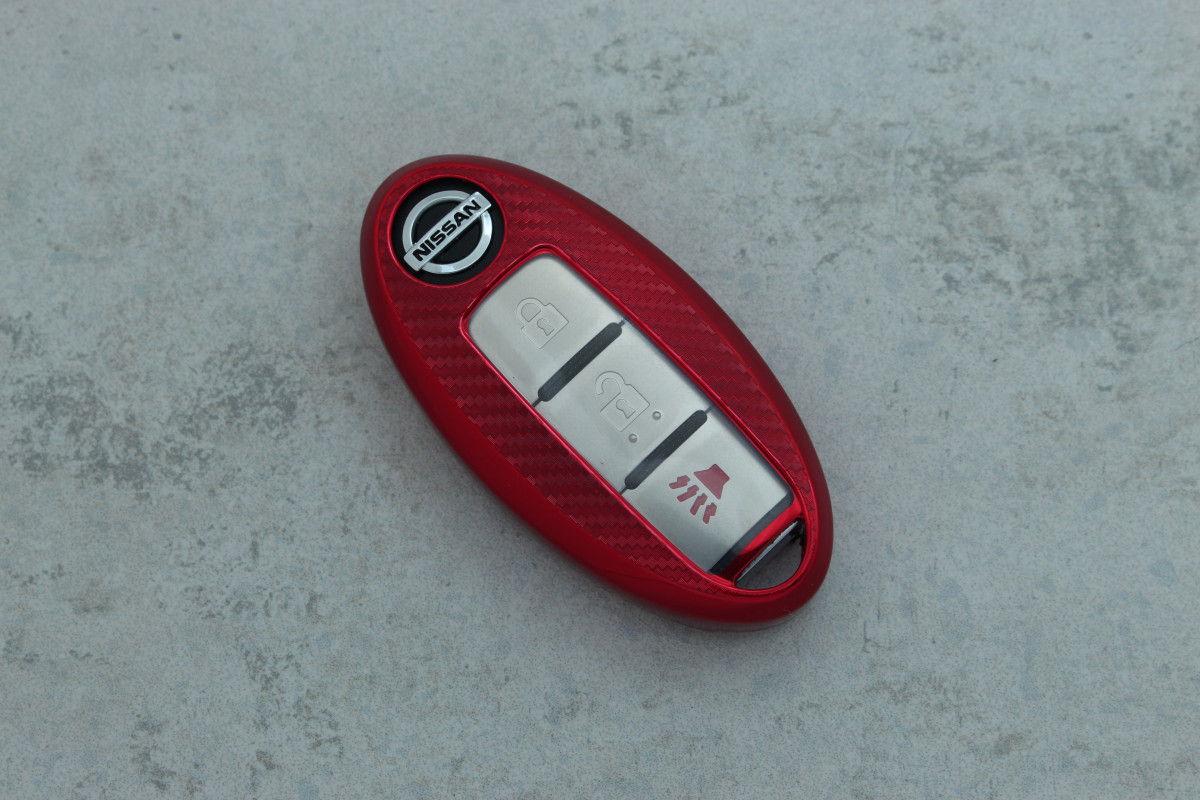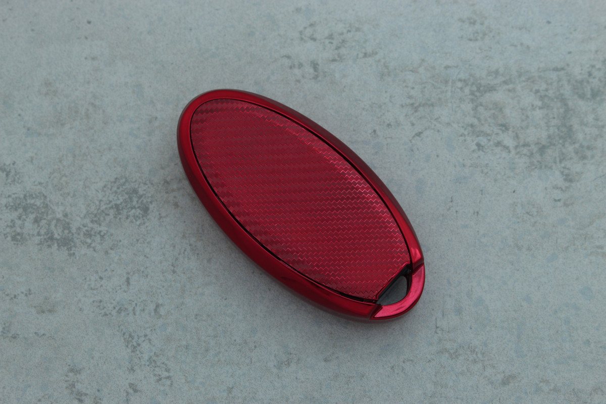 Чохол для автоключа Nissan 3 кнопки Qashqai/Juke J10/J11/X-Trail карбон червоний поліуретановий — стильний та практичний аксесуар, що захищає ключ від подряпин, ударів та щоденних пошкоджень.