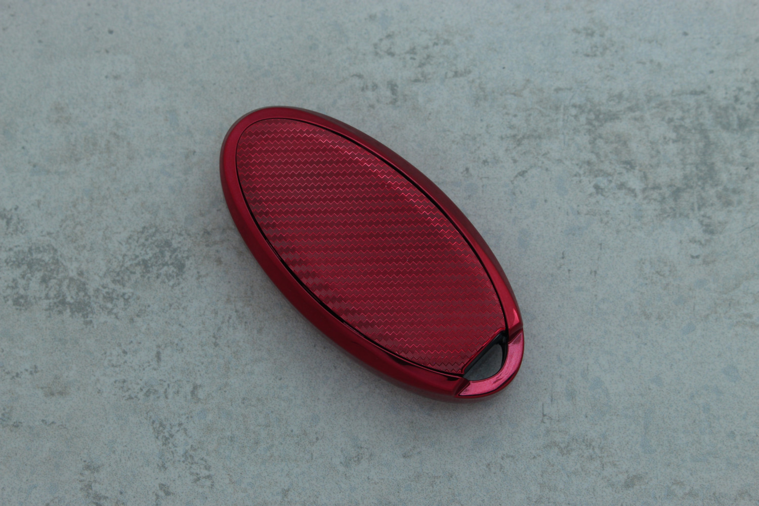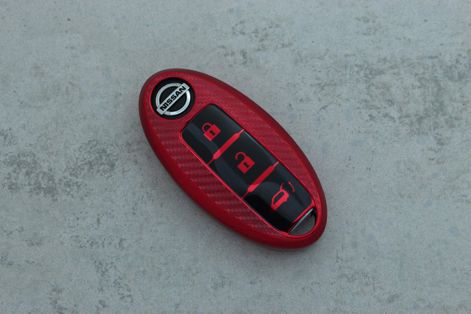 Чохол для автоключа Nissan 3 кнопки (Qashqai, Juke J10, X-Trail) червоний поліуретановий з карбоновим ефектом — яскравий і надійний аксесуар, що захищає ключ від подряпин, ударів та щоденного зносу.