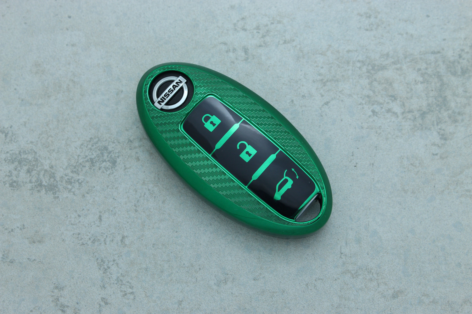 Чохол для автоключа Nissan 3 кнопки (Qashqai, Juke J10, X-Trail) зелений поліуретановий з карбоновим ефектом — яскравий і надійний аксесуар, що захищає ключ від подряпин, ударів та щоденного зносу.