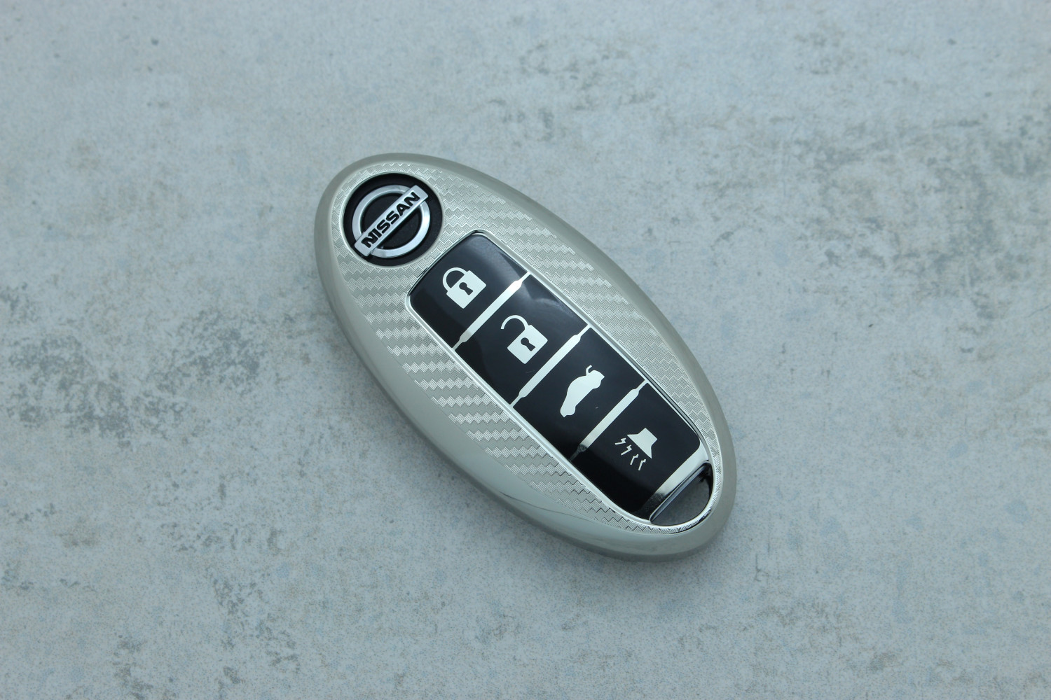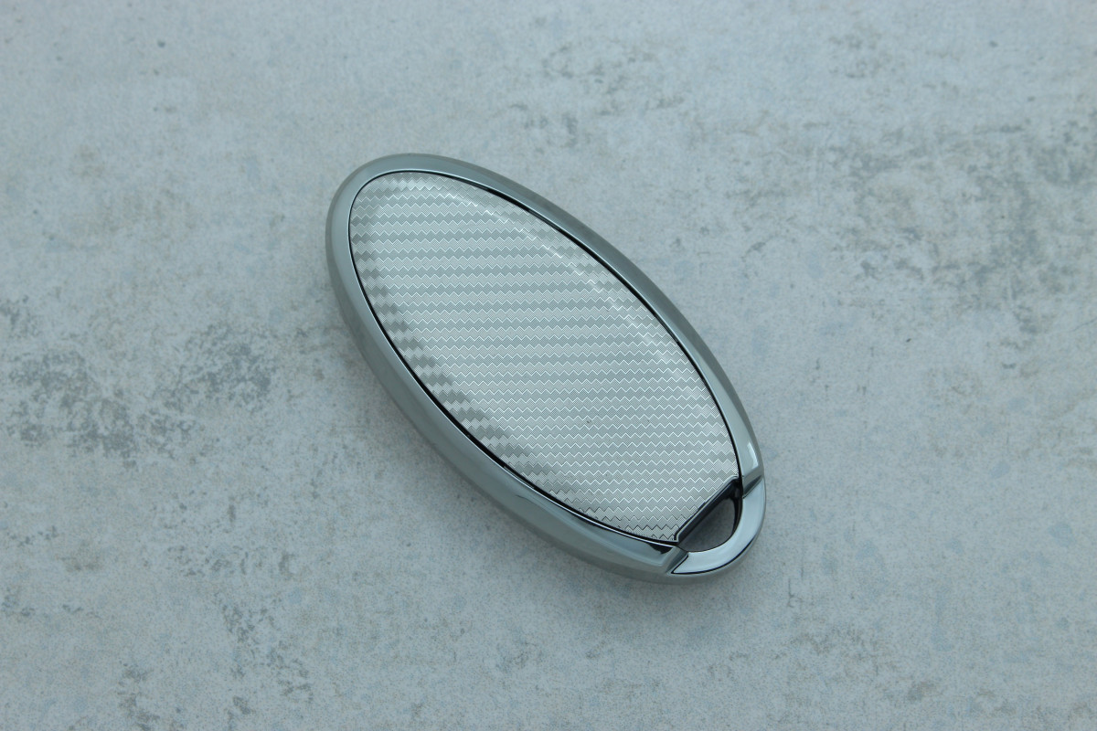 Чохол для автоключа Nissan 3+1 кнопки (Qashqai J10/J11, Juke, X-Trail) сріблястий поліуретановий з карбоновим візерунком — сучасний і надійний аксесуар, що захищає ключ від подряпин, ударів та щоденного зносу.