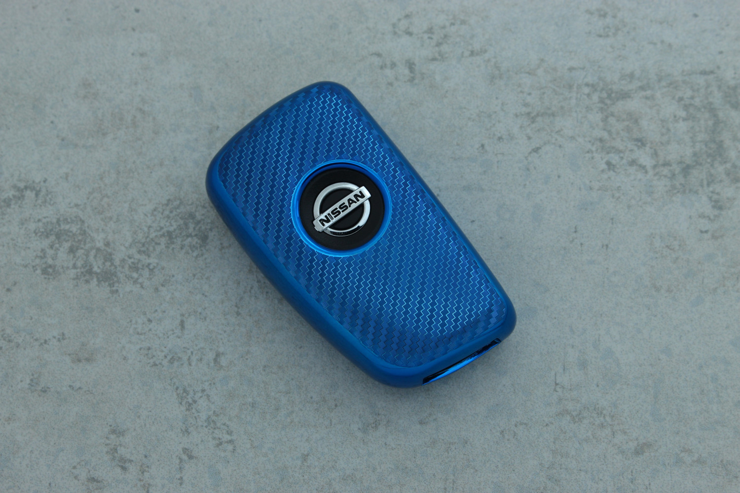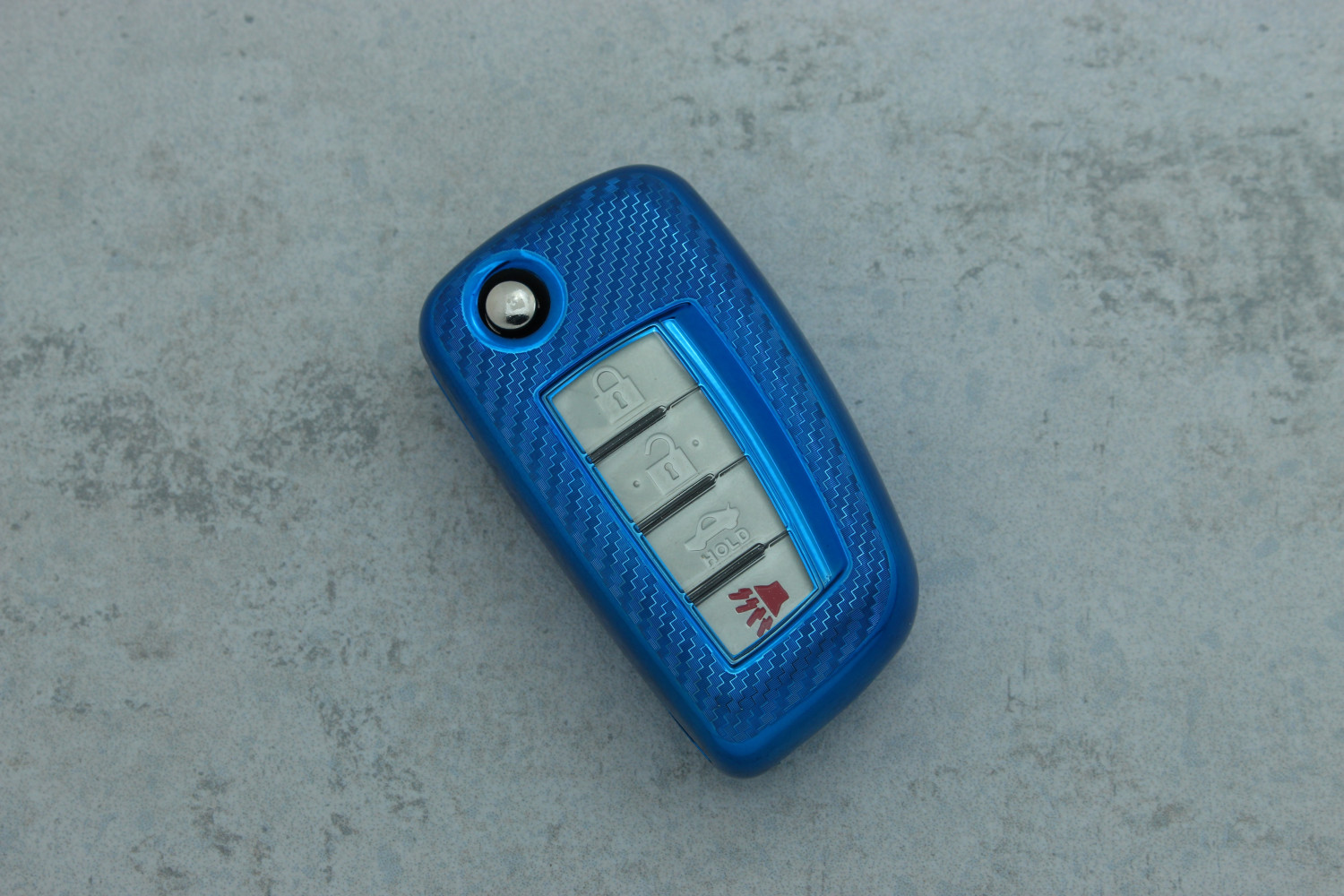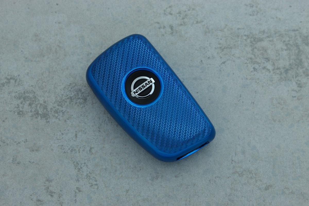 Чохол для автоключа Nissan 4 кнопки (Sylphy, Liwei, Sunshine, Venucia, Tiida) карбоновий синій — стильний і міцний аксесуар, що надійно захищає ключ від подряпин, ударів і щоденного зносу.