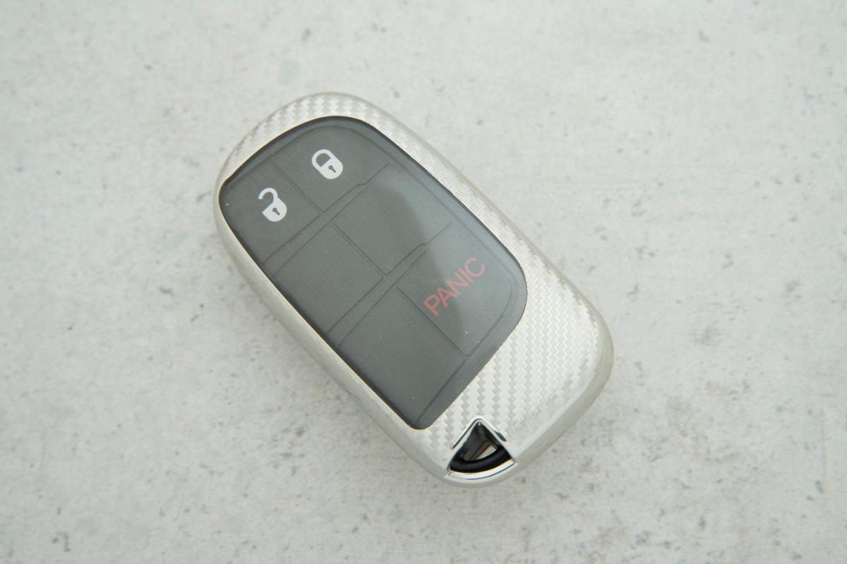 Чохол для автоключа Jeep / Dodge / Chrysler — універсальний аксесуар у кольорі сріблястий карбон, виготовлений із високоякісного поліуретану. Він створений для надійного захисту корпусу ключа від подряпин, потертостей, пилу та механічних пошкоджень, забезпечуючи при цьому зручне щоденне користування. М’який, але міцний матеріал чудово прилягає до поверхні, не ковзає в руці та зберігає форму з часом.