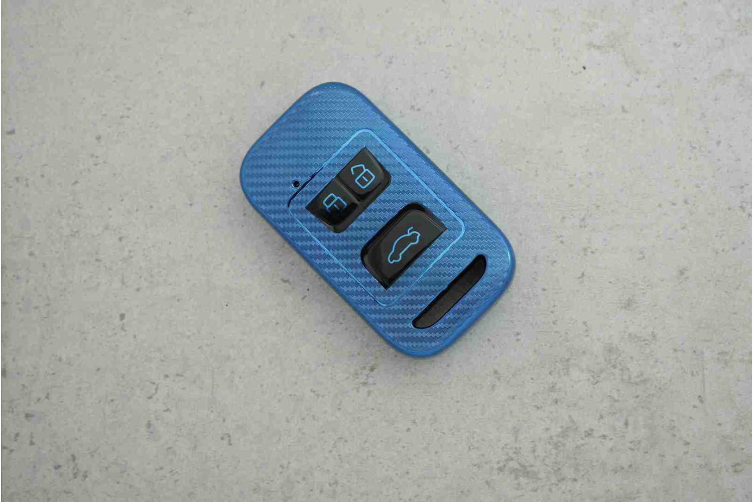 Стильний дизайн: синій колір із карбоновою текстурою надає ключу сучасного та виразного вигляду.