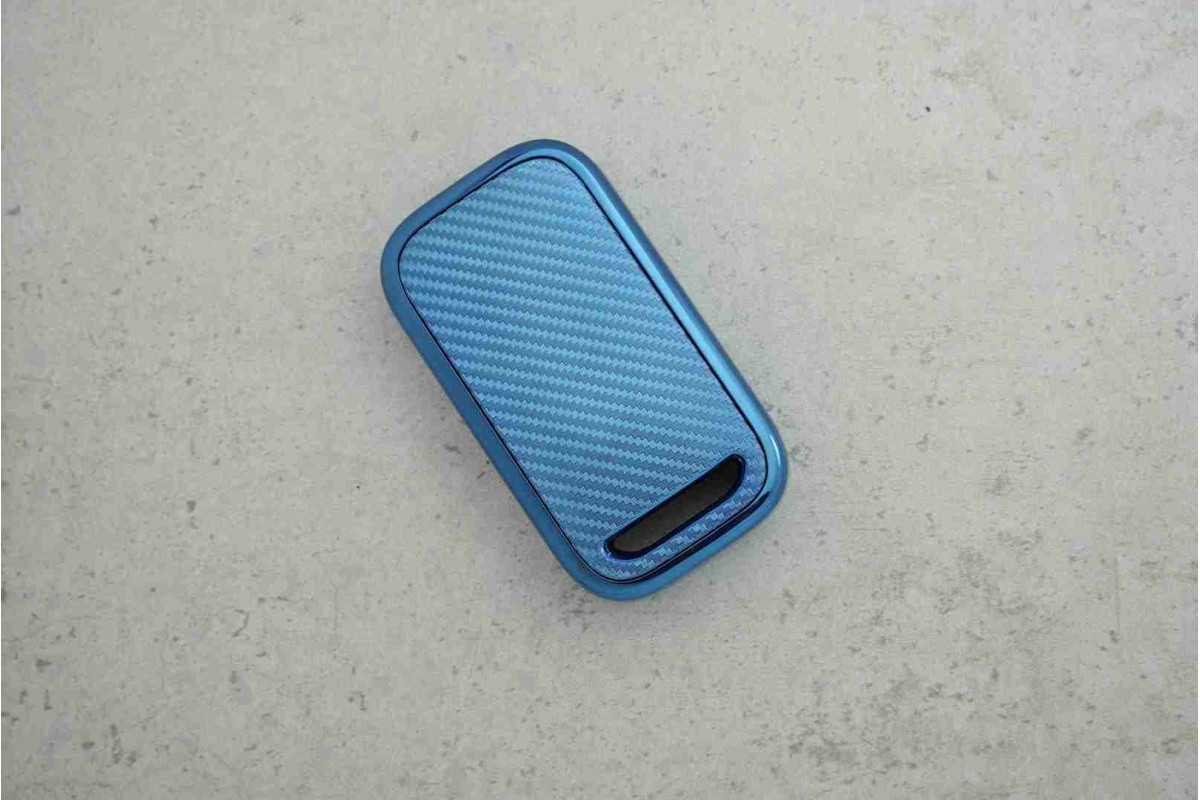 Чохол для автоключа Chery Tiggo 8 Hitag — синій карбон із поліуретану, 3 кнопки, практичний аксесуар, який захищає ключ від подряпин, потертостей та щоденних ушкоджень. Текстура «карбон» додає сучасного вигляду та приємний тактильний ефект, а поліуретан забезпечує комфортне користування.