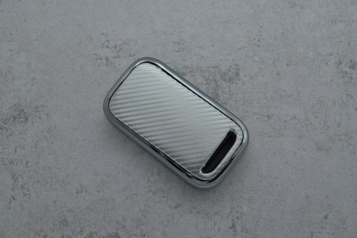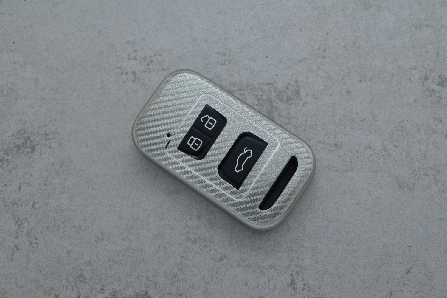 Чохол для автоключа Chery Tiggo 8 Hitag 3 кнопки срібний карбон поліуретан — сучасний і надійний аксесуар, який захищає ключ від подряпин, зносу та щоденних пошкоджень, підкреслюючи його стильний вигляд.