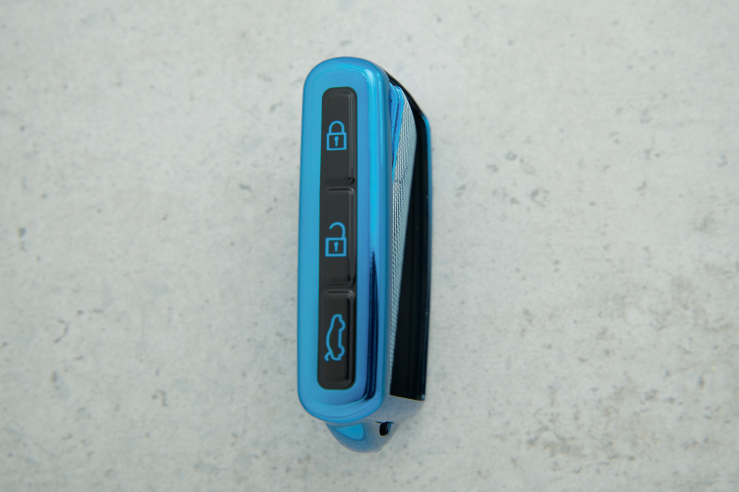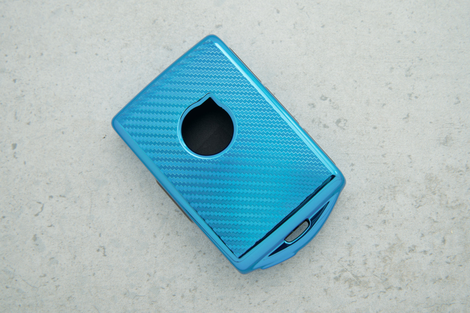 Чохол для ключа Volvo XC90 з 4 кнопками у синьому кольорі з карбоновими вставками — компактний поліуретановий аксесуар, створений для захисту ключа та стильного оновлення його зовнішнього вигляду. Він забезпечує зручність у використанні та надійний захист від щоденних пошкоджень.