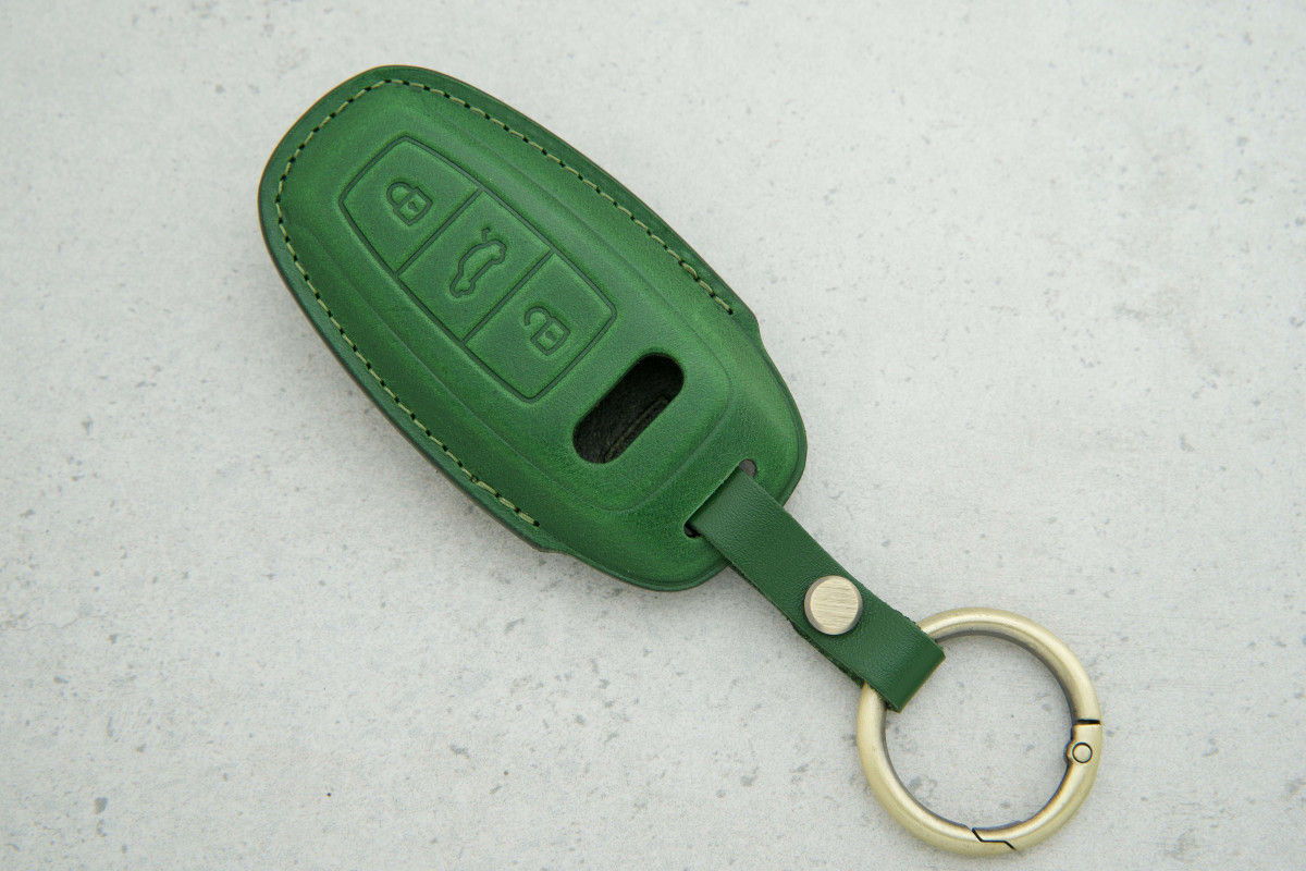 Чохол для автоключа Audi 3 кнопки зелений шкіряний — стильний та практичний аксесуар, який захищає ключ від подряпин, потертостей та щоденних пошкоджень, зберігаючи його охайний та презентабельний вигляд.