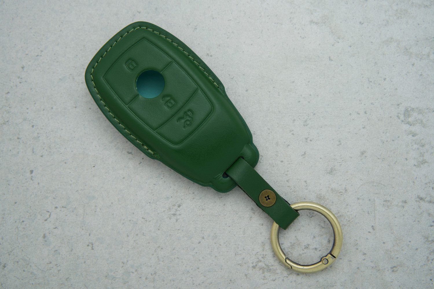 Чохол для ключа Mercedes Smart (A, E, C, S, SLK, SLS, ML) із 3 кнопками — стильний аксесуар із якісної зеленої шкіри, розроблений для захисту та оновлення вигляду автомобільного ключа.