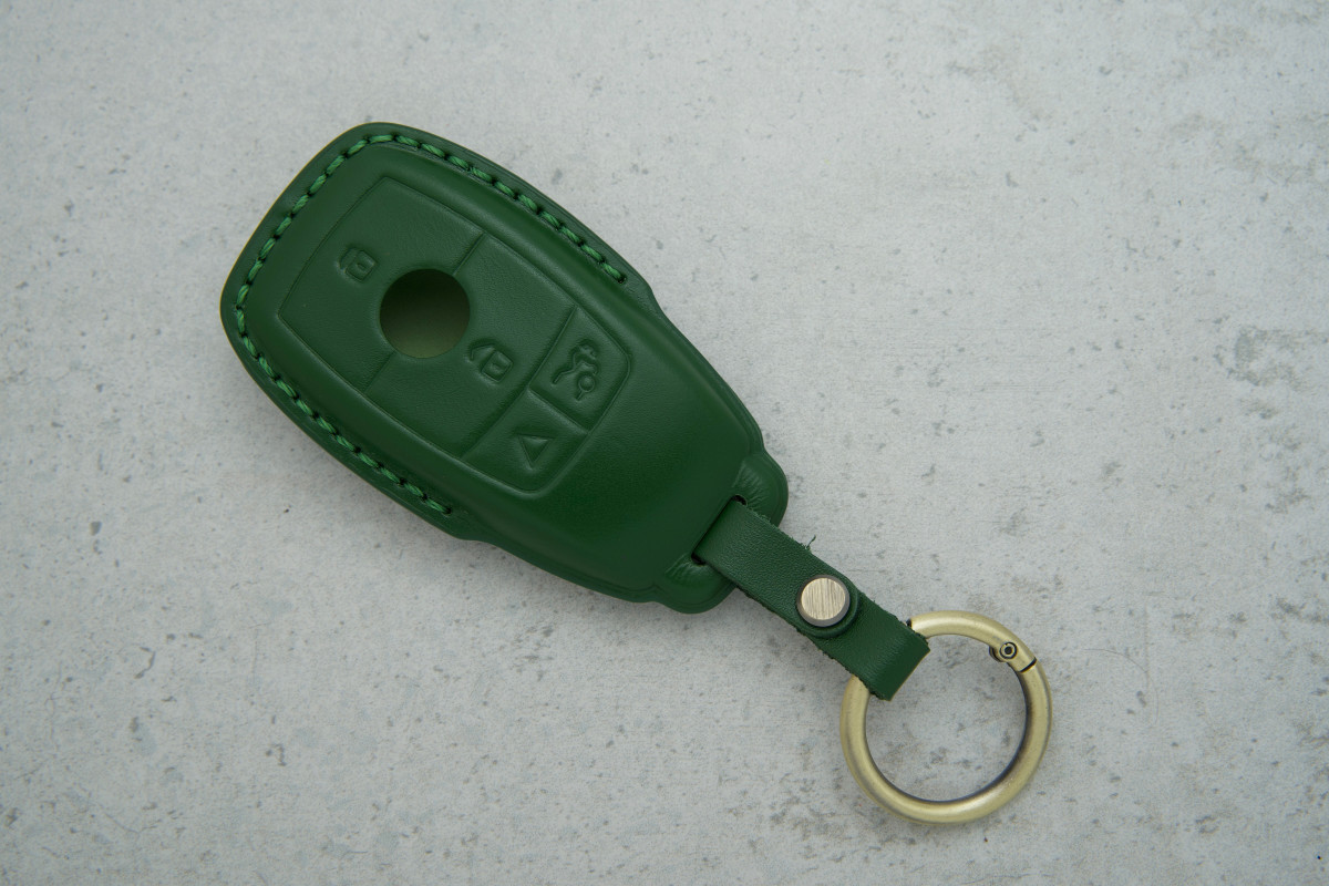 Чохол для ключа Mercedes Smart із 4 кнопками (A, E, C, S, SLK, SLS, ML) — стильний та функціональний аксесуар, виготовлений із високоякісної зеленої екошкіри. Він не лише забезпечує надійний захист ключа від подряпин і потертостей, а й додає йому яскравого, індивідуального вигляду.