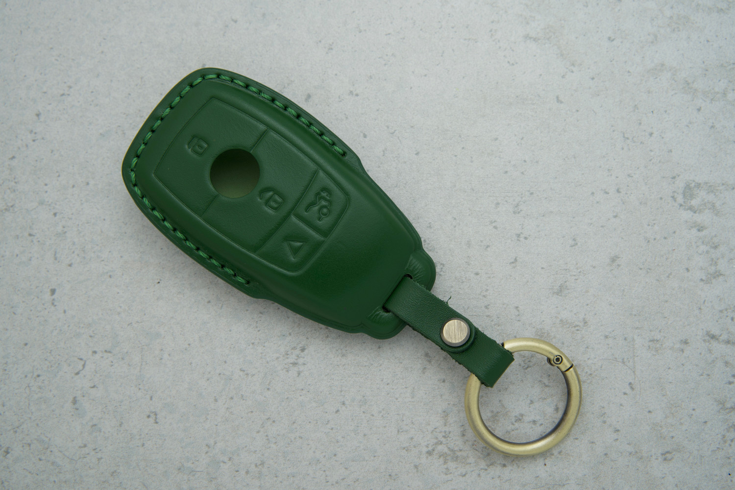 Чохол для ключа Mercedes Smart із зеленої шкіри поєднує захист, комфорт і стиль, роблячи щоденне користування ключем більш приємним і безпечним.