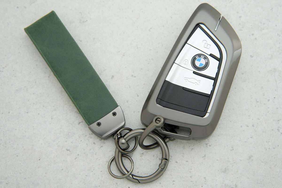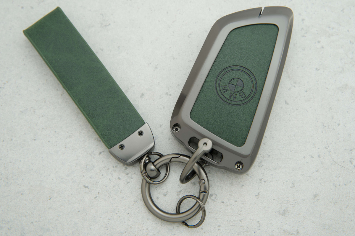 Чохол для автоключа BMW Smart — 4 кнопки, зелена шкіра з металевими елементами — стильний і практичний аксесуар, який надійно захищає ключ від подряпин, потертостей та повсякденних ушкоджень. М’яка натуральна шкіра облягає корпус ключа, а металеві вставки додають міцності та преміального вигляду.