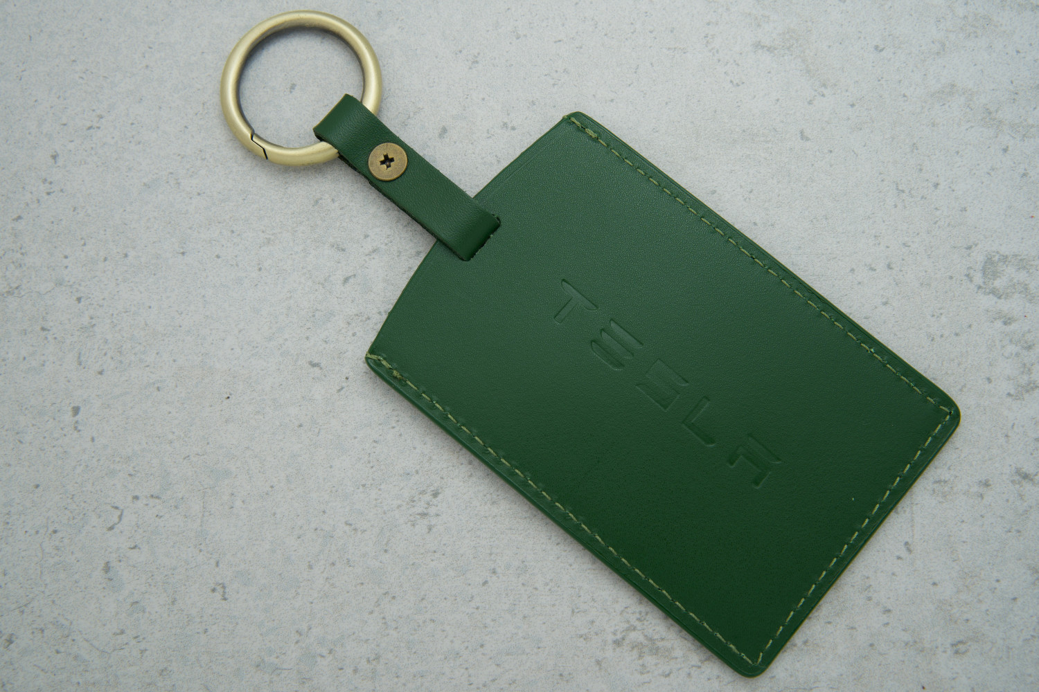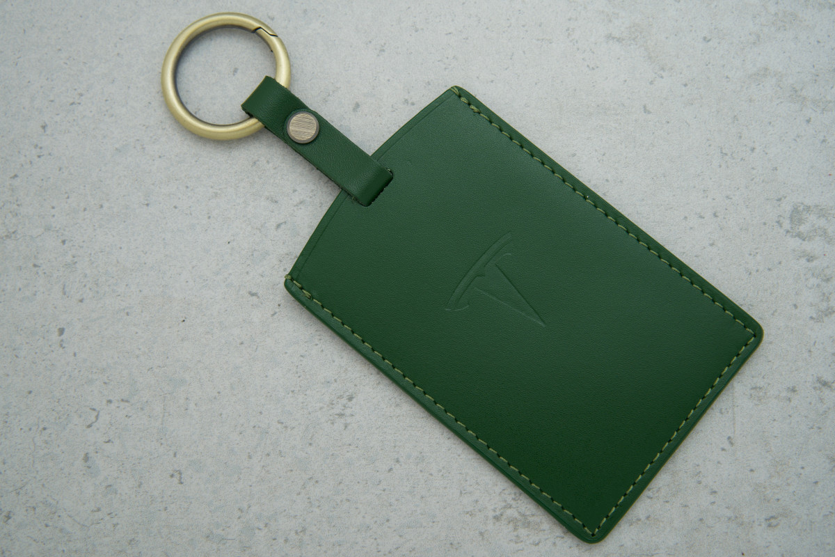 Стильний дизайн: зелений колір додає аксесуару виразності, а шкіряна фактура підкреслює преміальний характер Tesla.
