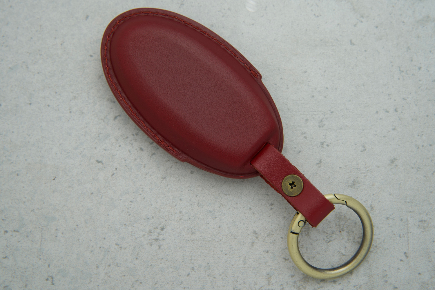 Стильний дизайн: насичений червоний колір і натуральна текстура шкіри надають ключу елегантного і сучасного вигляду.