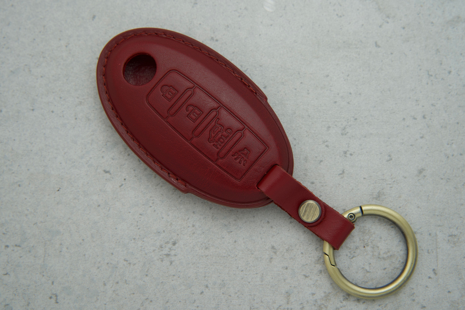 Чохол для ключа Nissan з 4 кнопками та червоною шкірою поєднує захист і стиль, забезпечуючи комфортне та приємне користування ключем щодня.