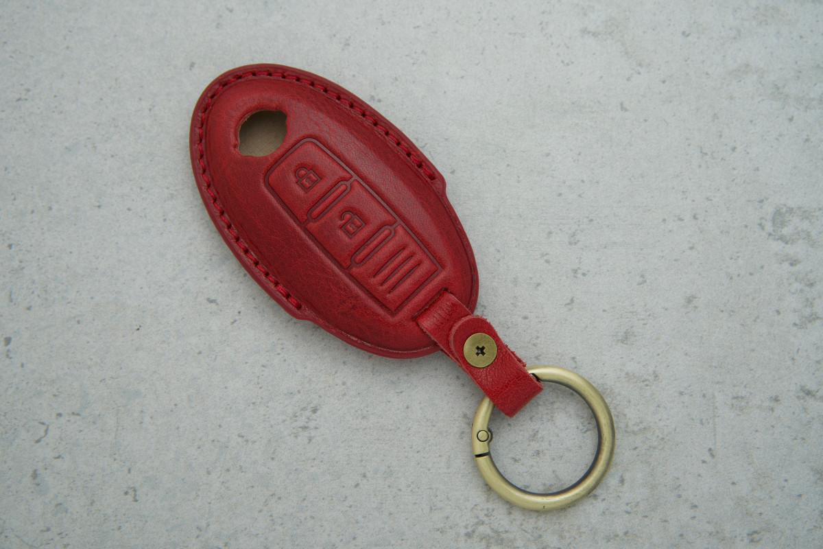 Чохол для ключа Nissan з червоною шкірою забезпечує надійний захист і стиль, поєднуючи практичність і естетичну привабливість у щоденному житті.