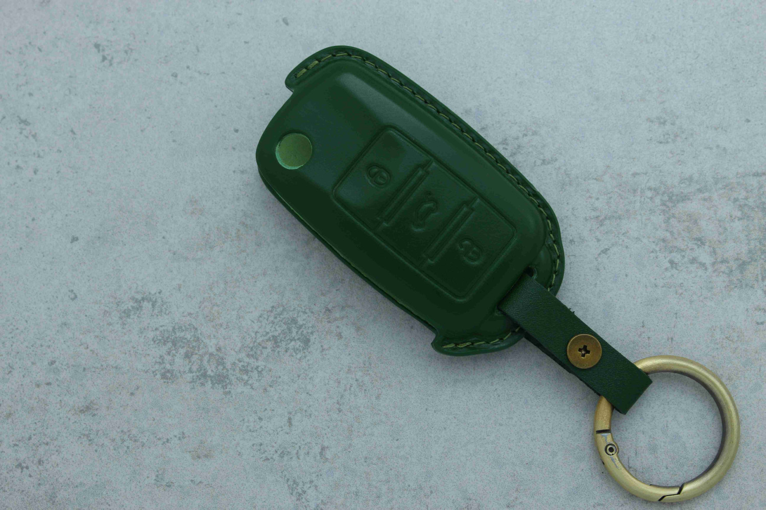 Чохол для автоключа VW — 3 кнопки, зелена шкіра — практичний і стильний аксесуар, який надійно захищає ключ від подряпин, потертостей та щоденних пошкоджень. М’яка натуральна шкіра щільно облягає корпус ключа, забезпечуючи комфортне користування та акуратний зовнішній вигляд.