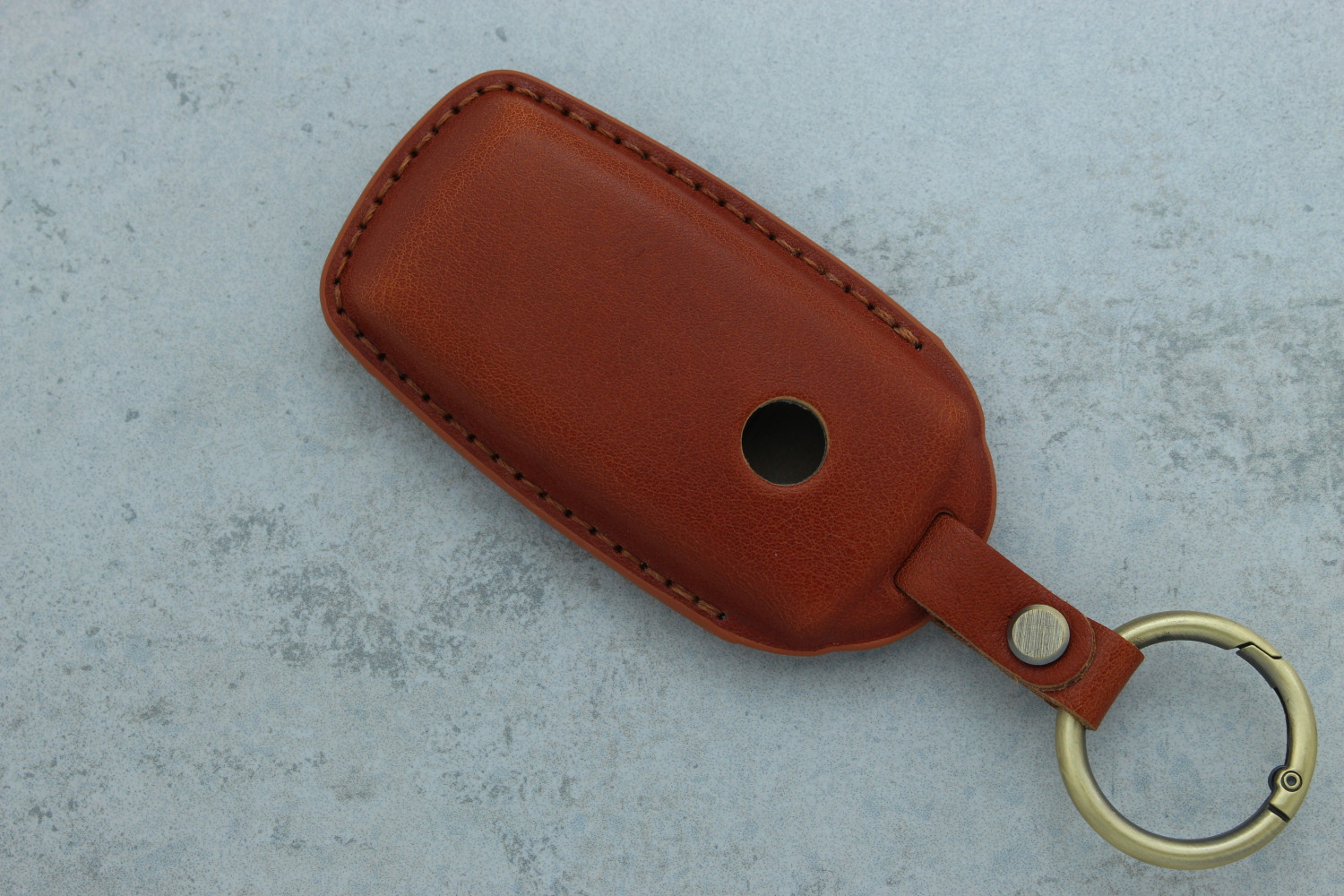 Чохол для автоключа Volkswagen 3 кнопки Touareg шкіряний коричневий — стильний та надійний аксесуар, що захищає ключ від подряпин, зносу та щоденних пошкоджень.
