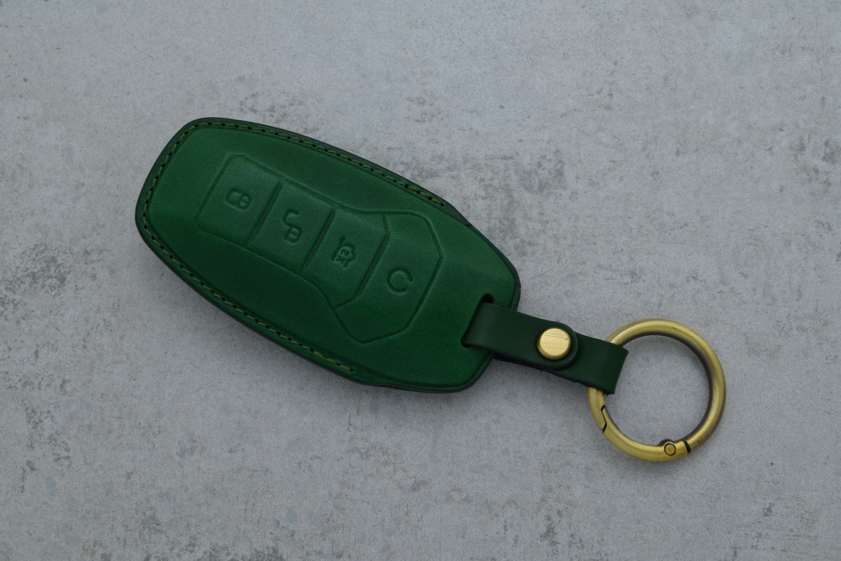 Чохол для автоключа BYD Smart 4 кнопки зелена шкіра — елегантний та надійний аксесуар, який захищає ключ від подряпин, зносу та щоденних пошкоджень, підкреслюючи його стильний вигляд.