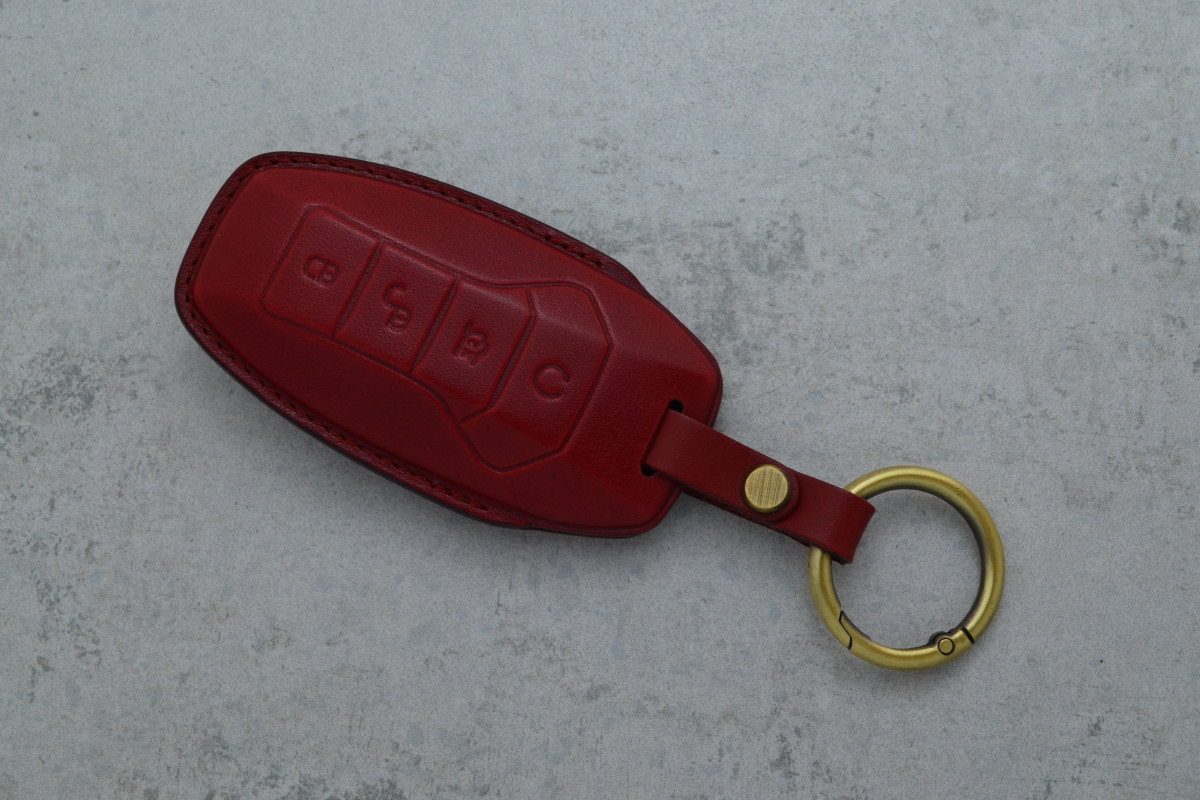 Чохол для автоключа BYD Smart 4 кнопки червона шкіра — яскравий та надійний аксесуар, який захищає ключ від подряпин, зносу та щоденних пошкоджень, підкреслюючи його стильний вигляд.