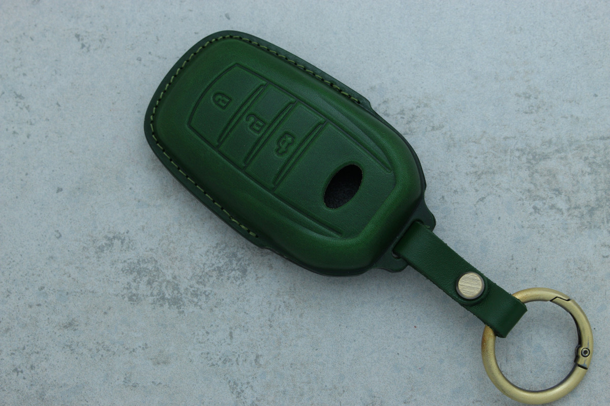 Чохол для автоключа Toyota Smart 3 кнопки (Camry) зелений шкіра — стильний та надійний аксесуар, створений для захисту смарт-ключів Toyota. Ідеальне рішення для автовласників, які цінують довговічність, комфорт та преміальний вигляд.