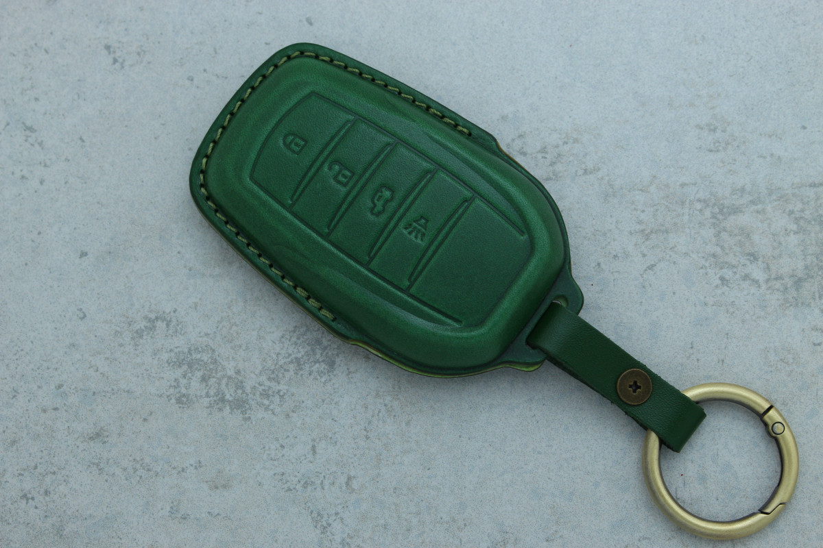 Чохол для автоключа Toyota Smart 4 кнопки Camry зелений шкіра — яскравий і практичний аксесуар, що надійно захищає ключ від подряпин, зносу та щоденних пошкоджень, додаючи індивідуальності.
