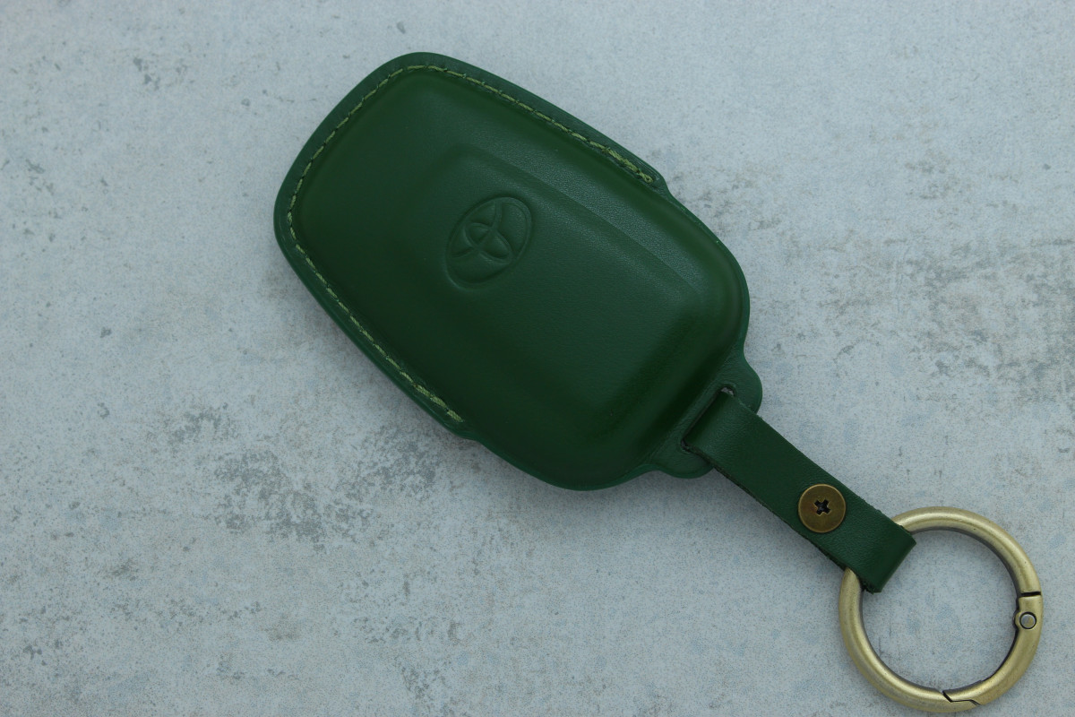 Чохол для автоключа Toyota Smart 3+1 кнопка Corolla/Cross ПТ зелений шкіра — практичний та яскравий аксесуар, що захищає ключ від подряпин, зносу та щоденних пошкоджень, додаючи індивідуальності.