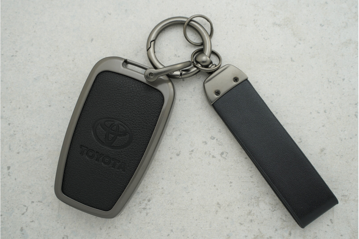 З цим шкіряно-металевим чохлом ключ Toyota Corolla та Corolla Cross надійно захищений, практичний у використанні та виглядає стильно й охайно.