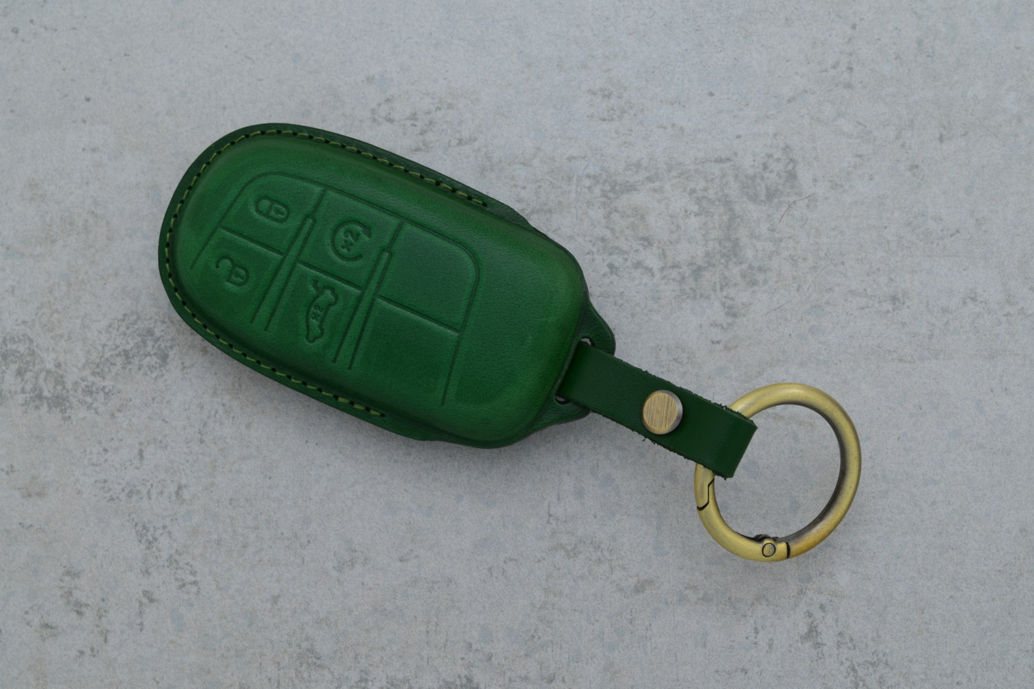 Чохол для автоключа Jeep Cherokee Smart 4 кнопки зелена шкіра — елегантний та надійний аксесуар, який захищає ключ від подряпин, зносу та щоденних пошкоджень, підкреслюючи його стильний вигляд.