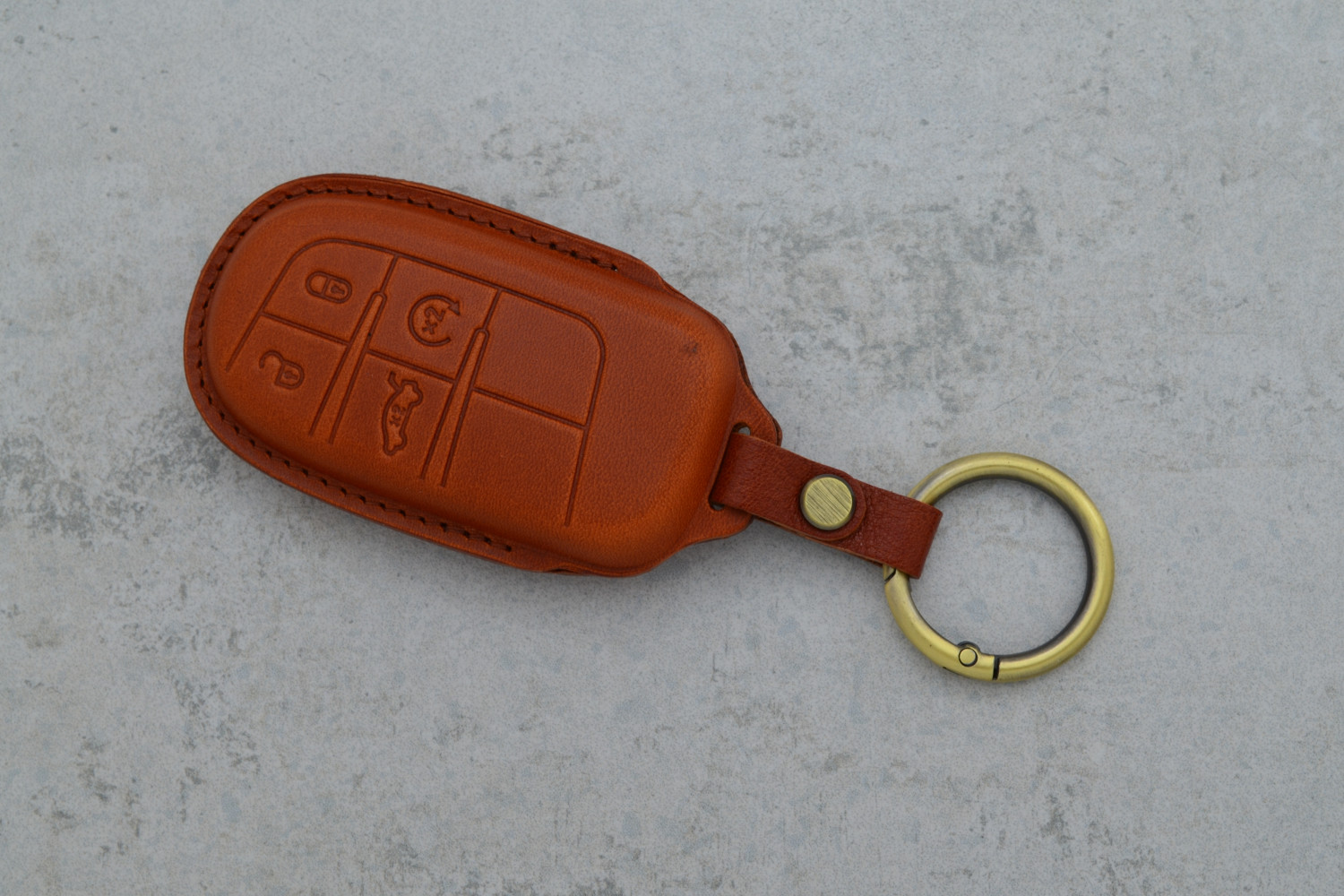 Чохол для автоключа Jeep Cherokee Smart 4 кнопки коричнева шкіра — елегантний і практичний аксесуар, який надійно захищає ключ від подряпин, зношування та щоденних пошкоджень, підкреслюючи його преміальний вигляд.
