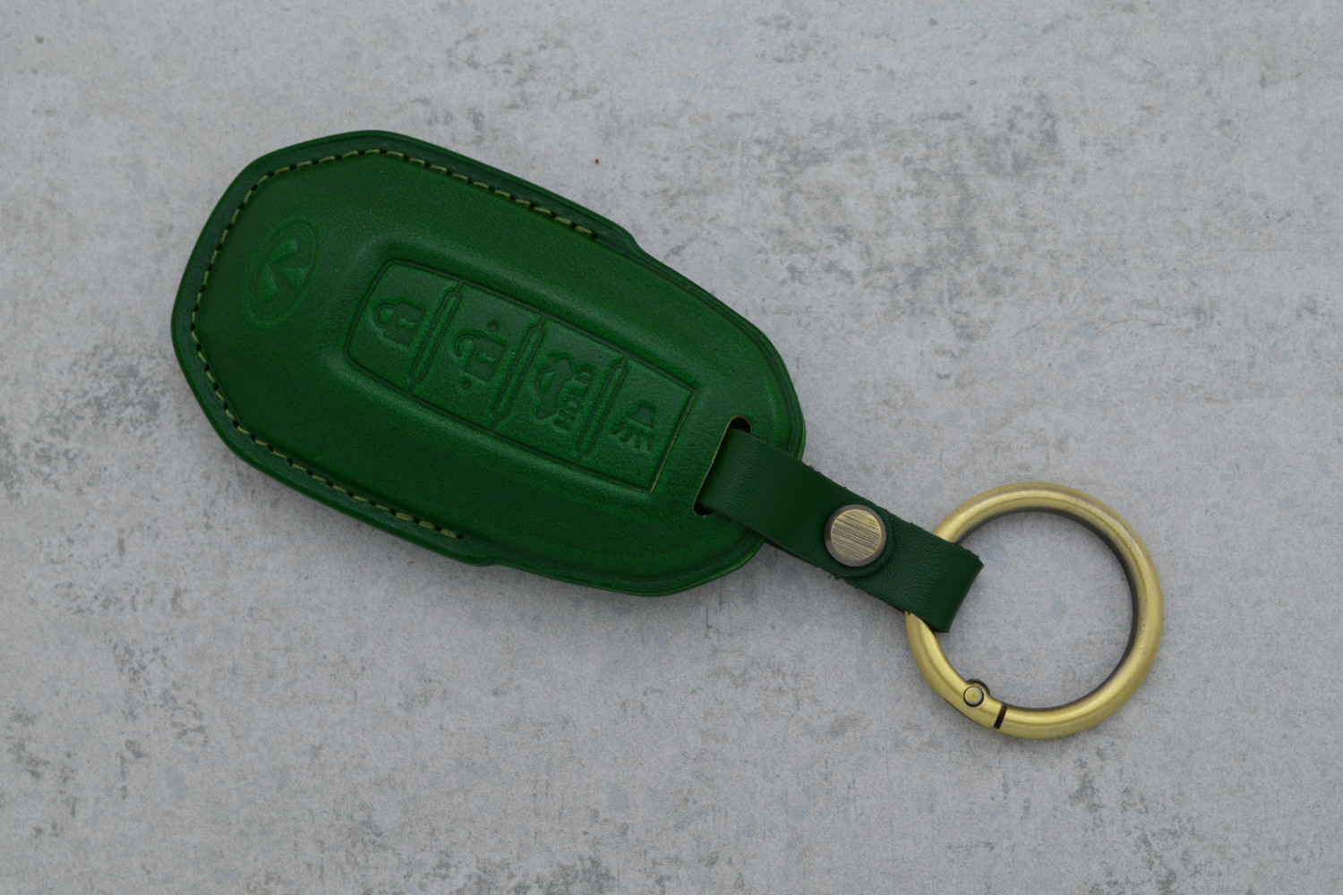 Чохол для автоключа Infiniti Smart 4 кнопки зелена шкіра — вишуканий аксесуар, створений для надійного захисту ключа від подряпин, потертостей і випадкових пошкоджень. М’яка шкіра приємна на дотик і підкреслює преміальний стиль автомобіля.
