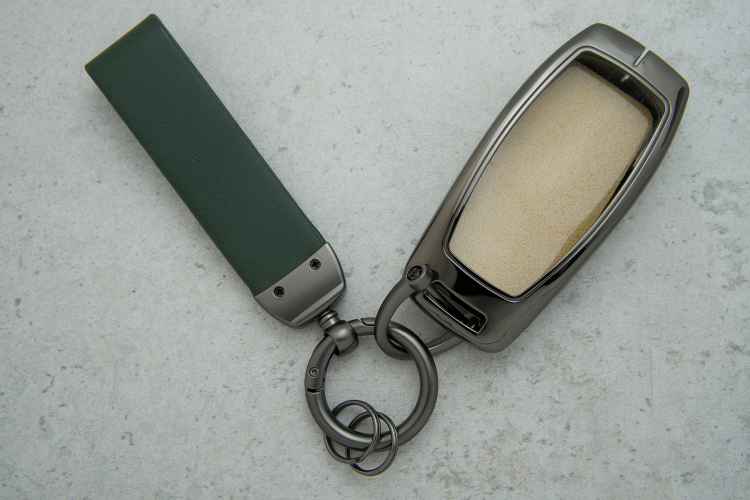 Чохол для ключа Mercedes (універсальний) — елегантне поєднання сірого металевого корпусу та зеленої вставки зі шкіри, створене для тих, хто цінує стиль і практичність. Такий аксесуар забезпечує надійний захист ключа від подряпин, ударів і зносу, водночас надаючи йому сучасного вигляду.