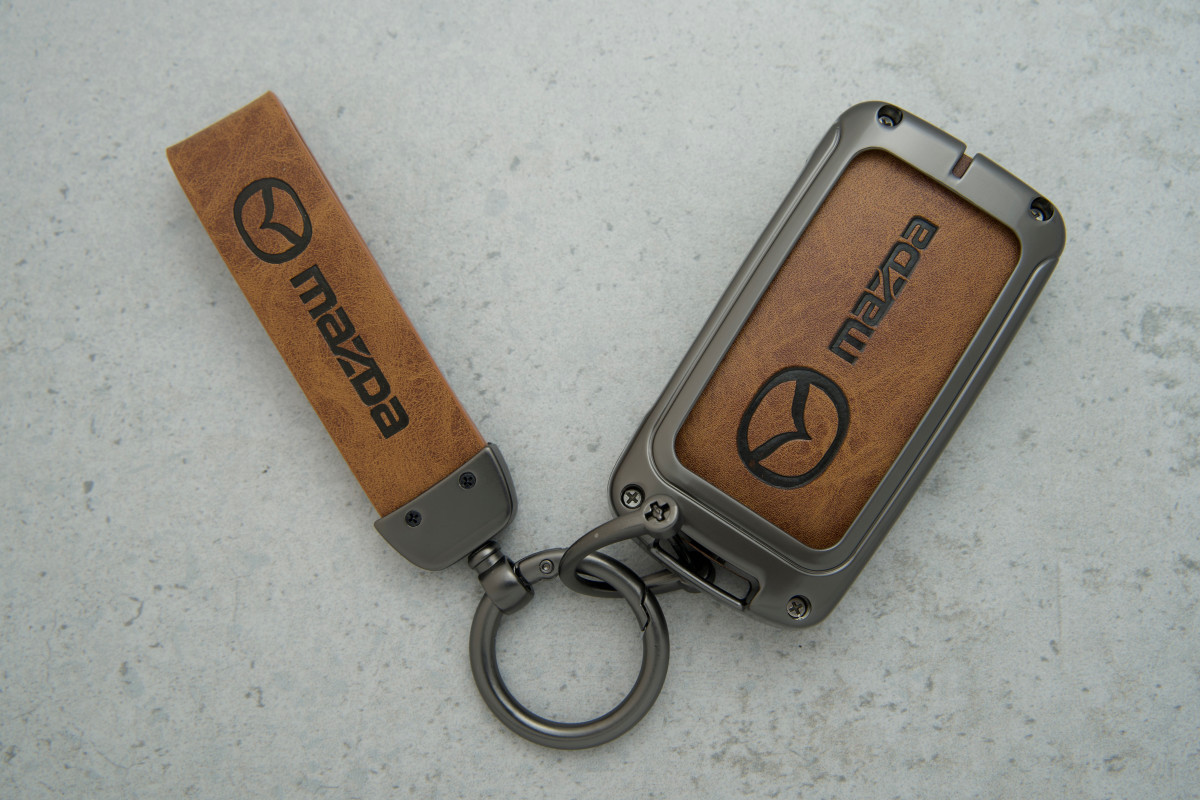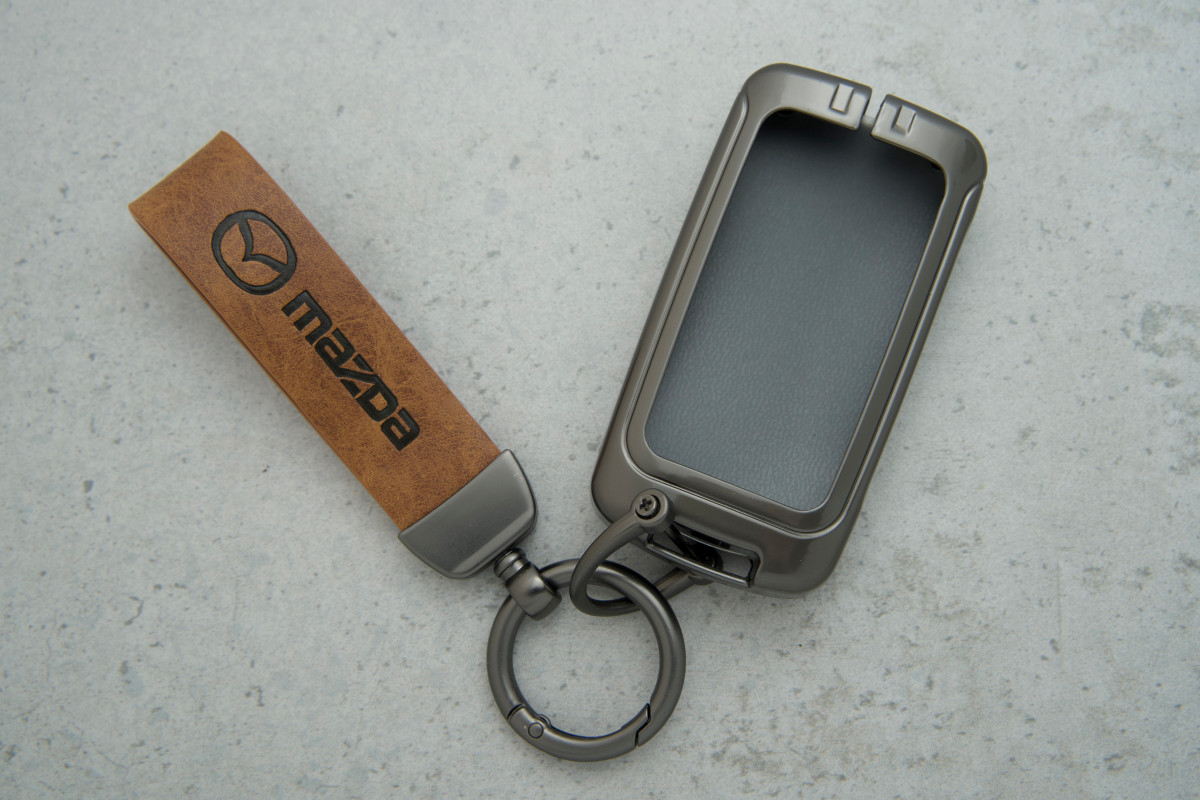 Чохол для ключа Mazda універсальний — стильний аксесуар, виготовлений із поєднання коричневої шкіри та сірого металу. Такий дизайн не лише підкреслює елегантність бренду, а й забезпечує надійний захист ключа від подряпин, потертостей та ударів. Завдяки універсальній формі, чохол підходить до більшості моделей ключів Mazda, забезпечуючи комфортне та безпечне користування.