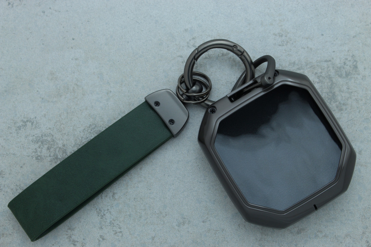 Сучасний дизайн: поєднання зеленої шкіри та сірого металу надає ключу свіжого і елегантного вигляду.